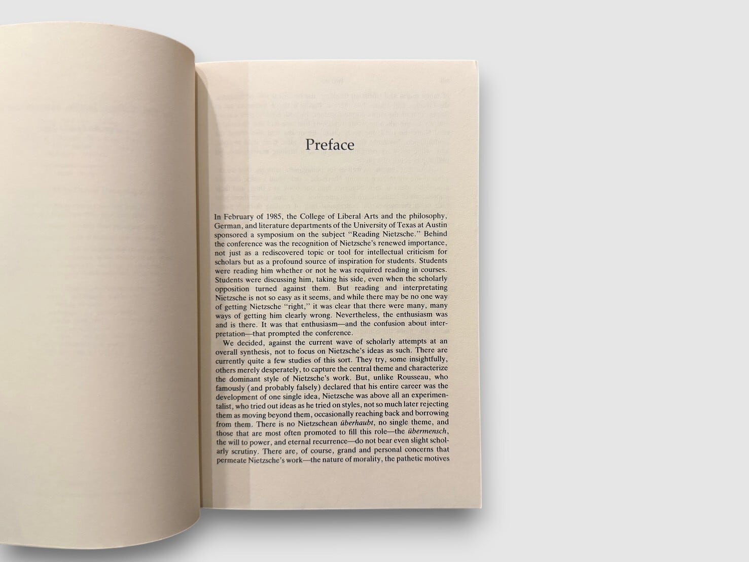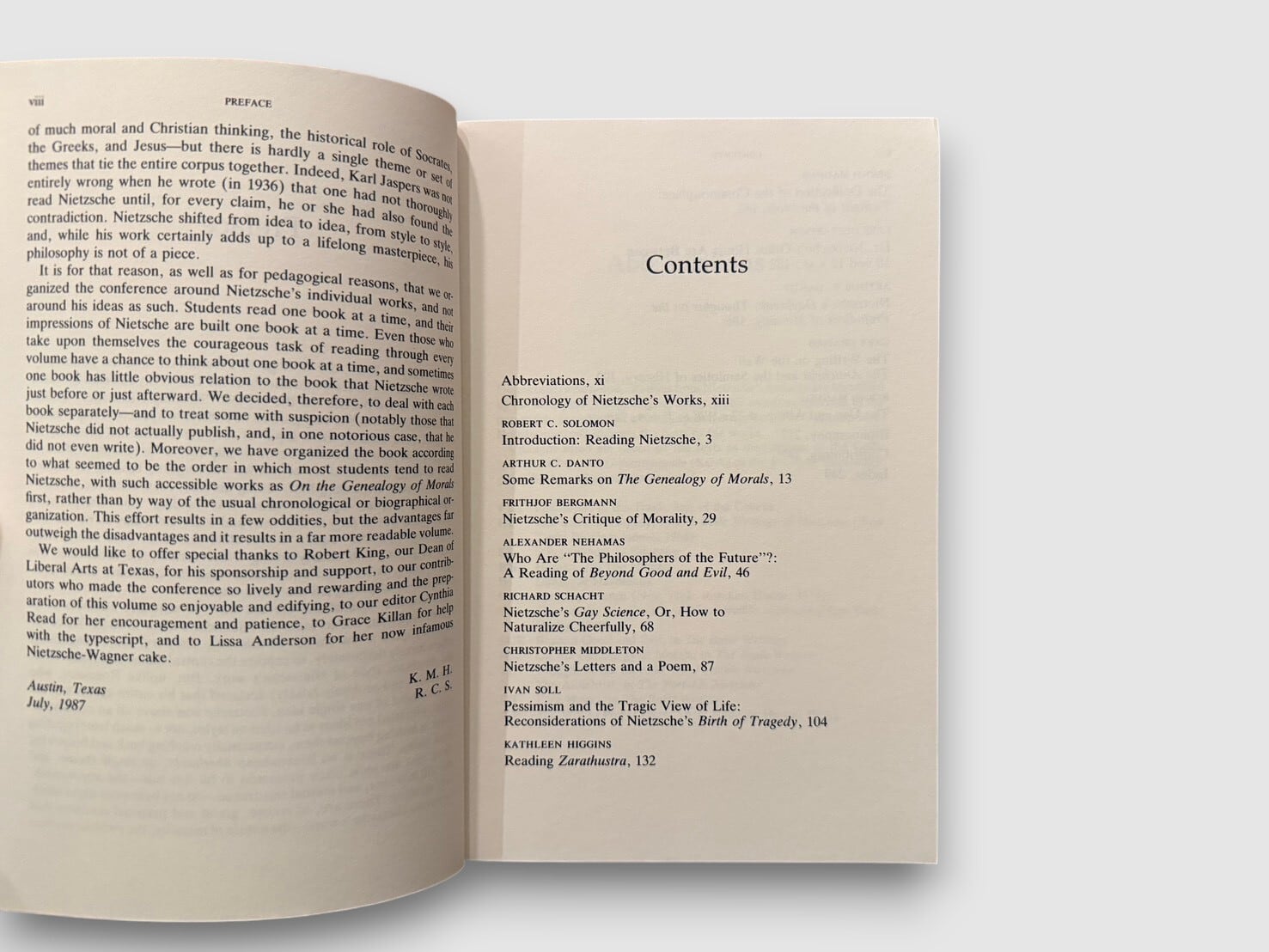 本書ではニーチェの著作『道徳の系譜』『善悪の彼岸』『ツァラトゥストラ』などを対象に、複数の研究者による論文を収録している。1988年初版、1990年ペーパーバック版。