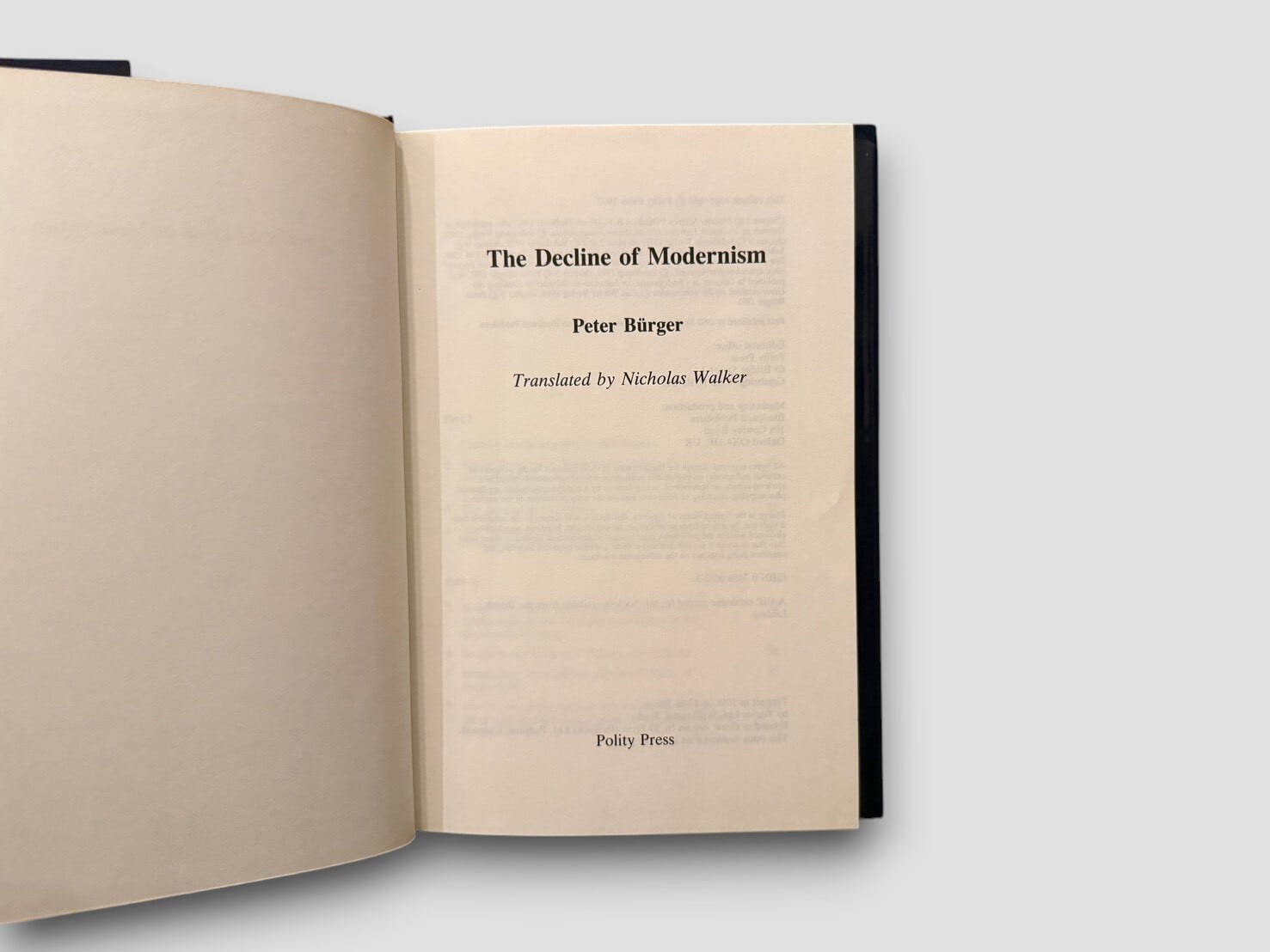 【SFF276】【FIRST ENGLISH EDITION】The Decline of Modernism(1992) /Peter Bürger