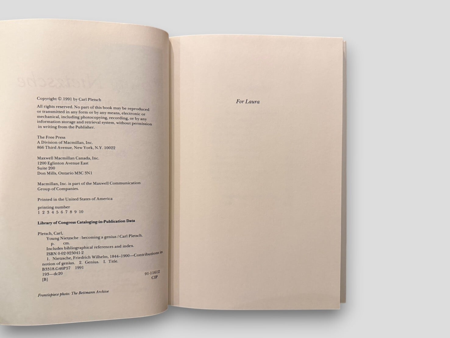 【SFF294】【FIRST EDITION】Young Nietzsche: Becoming a Genius(1991) /Carl Pletsch