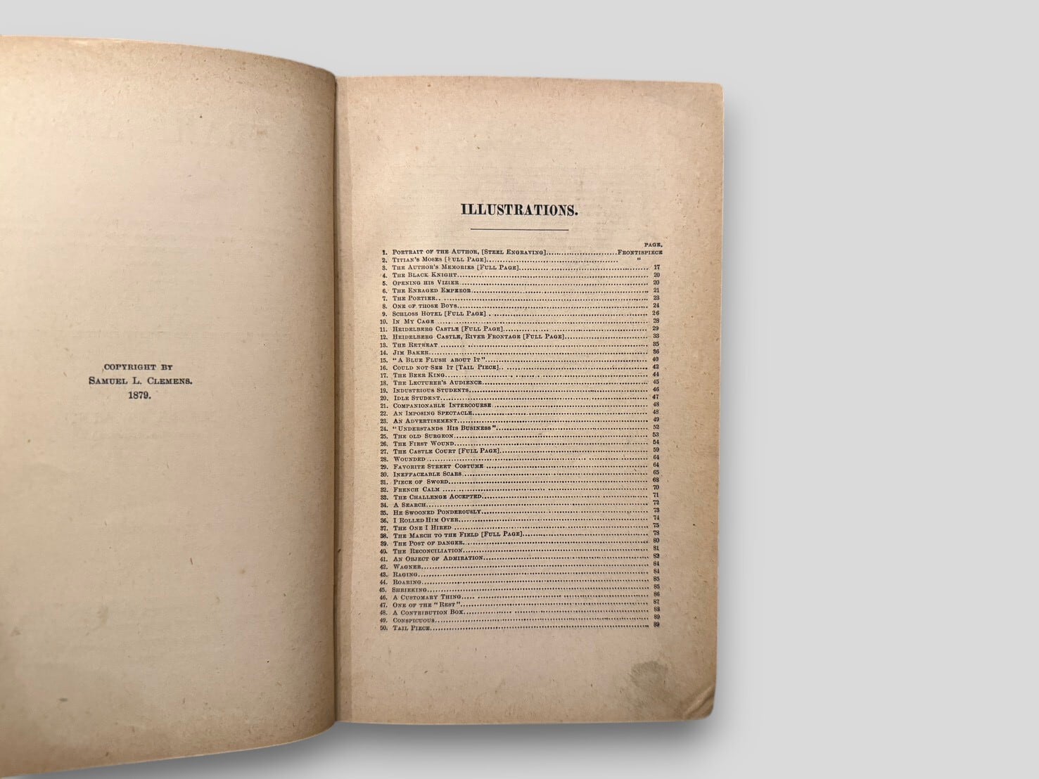 A travel narrative by Mark Twain based on his journey through Europe in 1878. The book includes 328 illustrations by W. F. Brown, True Williams, B. Day, and others, with a few drawings by the author himself. Published in 1880 by American Publishing Company (Hartford) and Chatto & Windus (London).