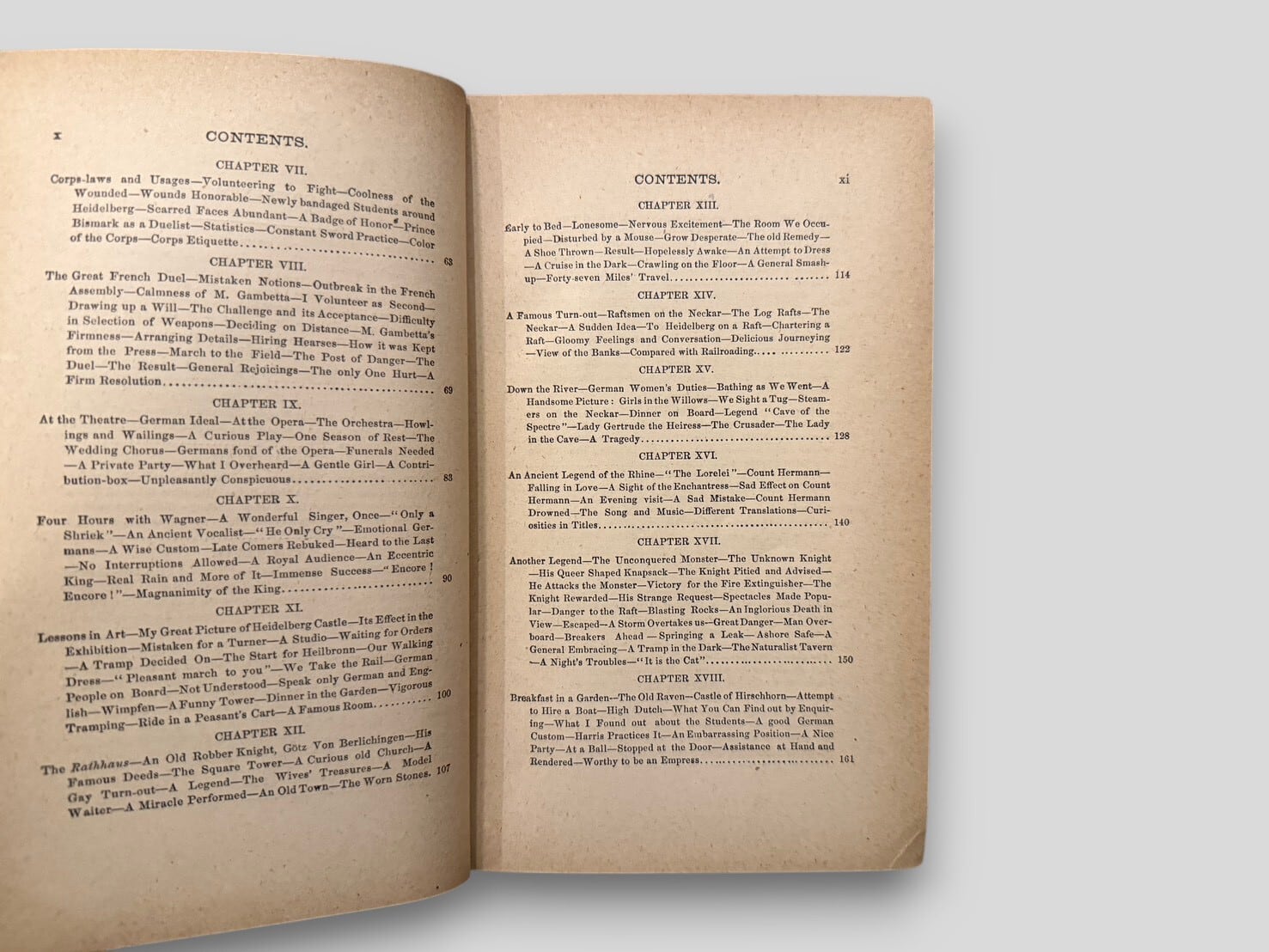 19世紀アメリカ文学を代表する作家、マーク・トウェインによる1878年のヨーロッパ旅行をもとに書かれた旅行記。ドイツやスイスを中心に、風景や文化、日常の出来事をユーモアを交えて描かれている。また328点の挿絵が収録されており、当時の視覚的記録としての側面も備えている。1880年刊行初版。