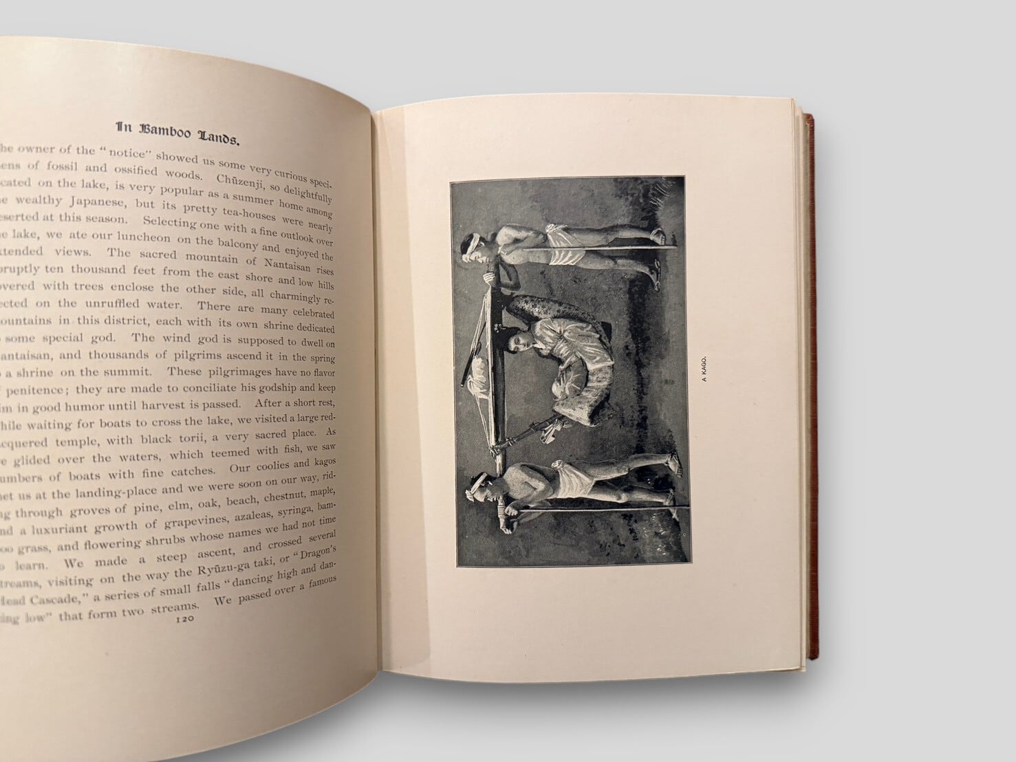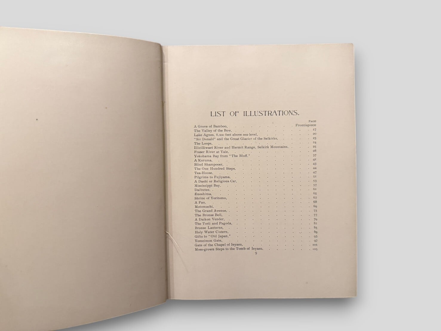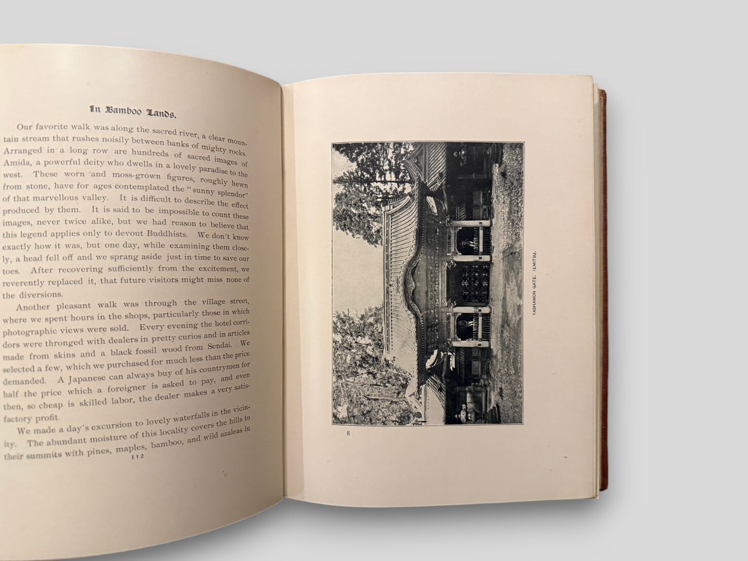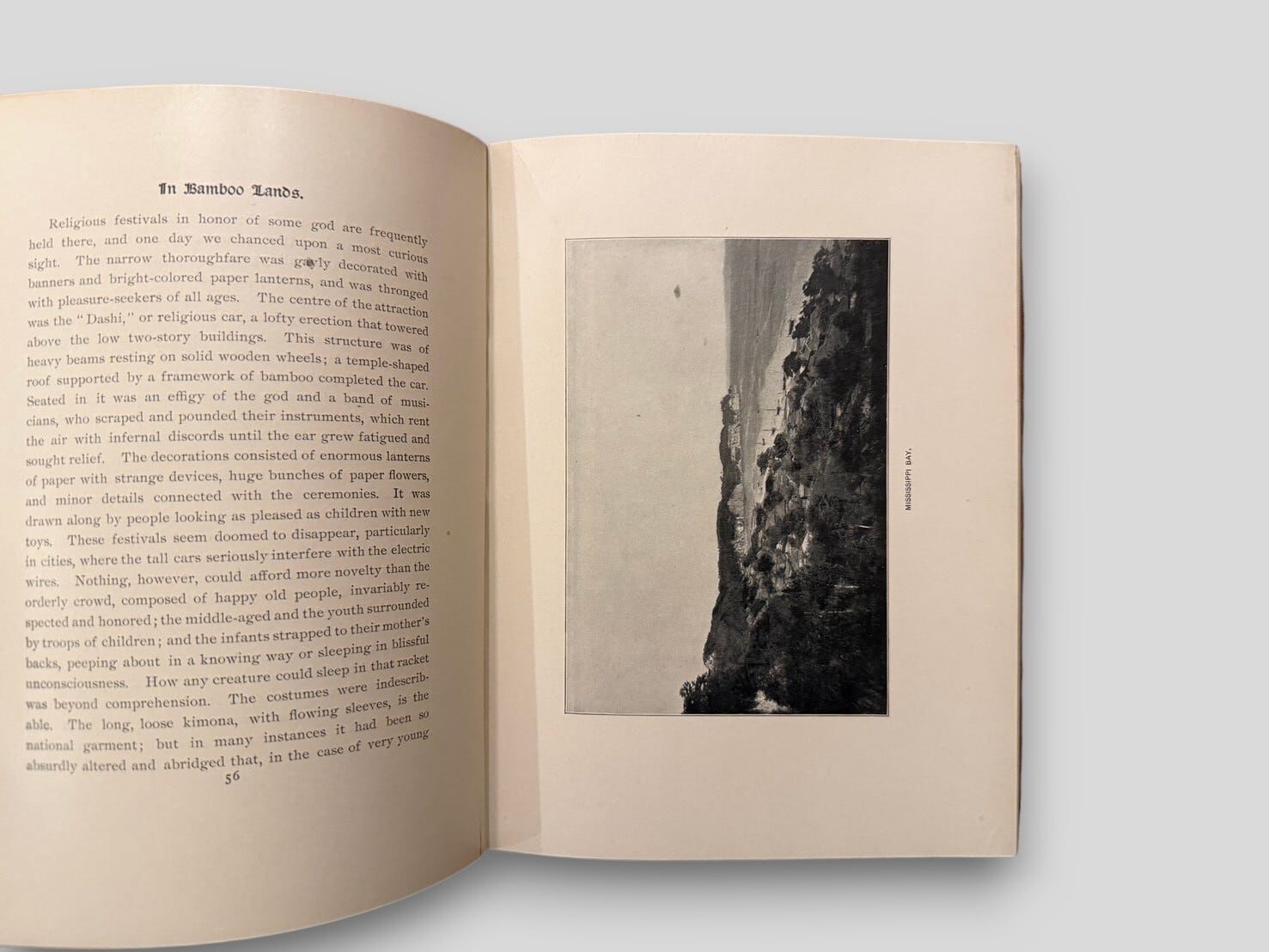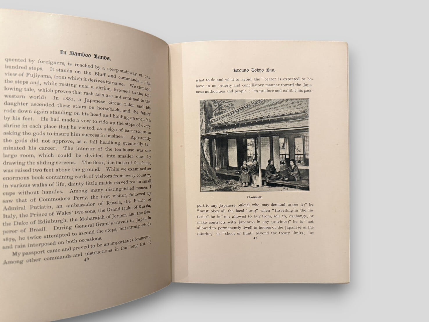明治期の日本を訪れた記録をもとに綴られた紀行書。著者キャサリン・シュイラー・バクスターが日本各地を巡りながら見聞した風俗や景観、生活の様子を記録している。東京や京都、日光などを訪れた記述に加え、住居や宗教施設、日常の習慣に関する観察が簡潔な文章でまとめられている。写真多数収録。異なる文化に触れたときの視線の揺れが、そのまま静かに残されている一冊。1895年刊行初版。