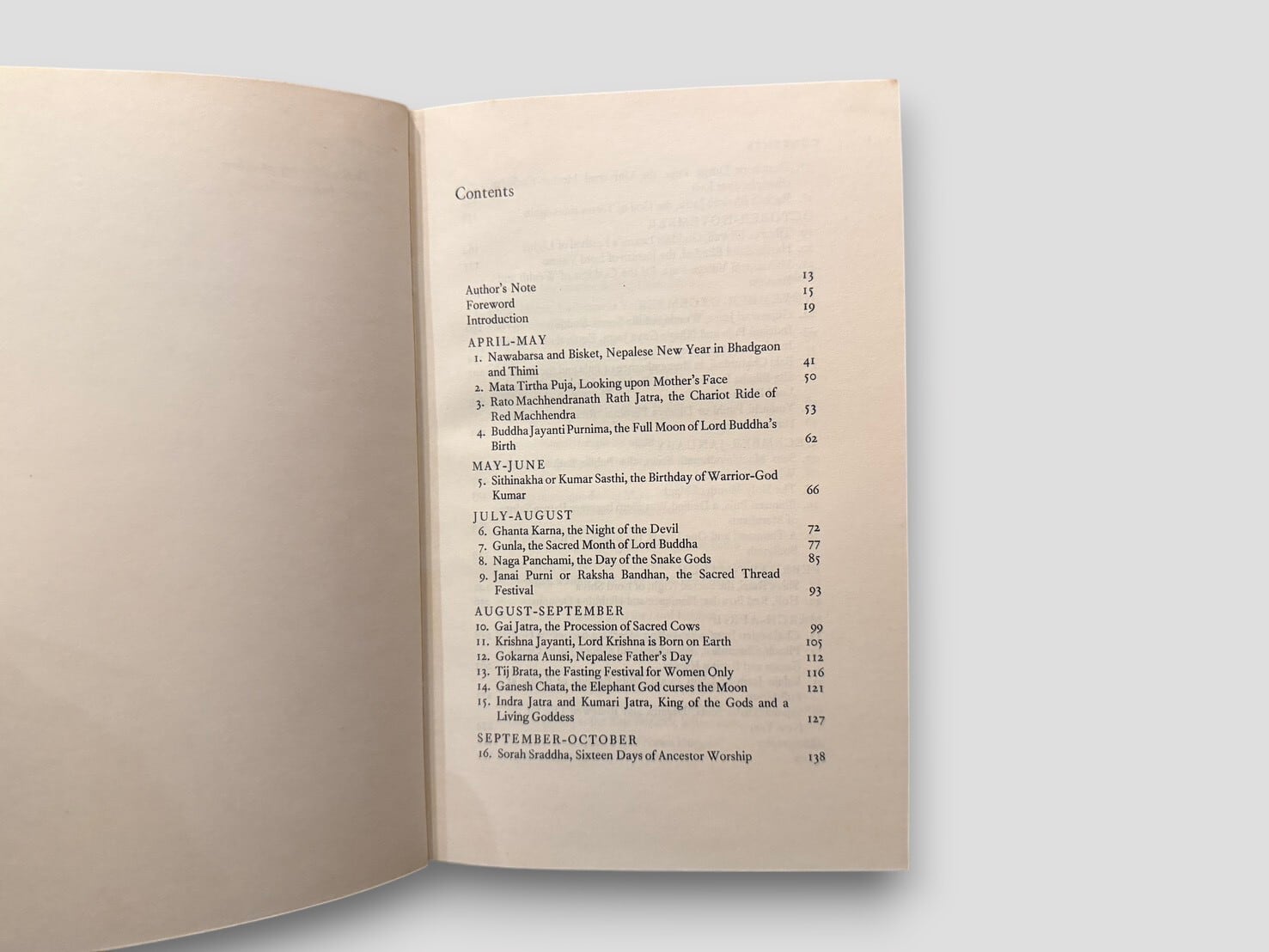 ネパールの祭礼文化を現地での滞在経験をもとに記録した文化記録書。本書ではネパール各地の祭りを年間の暦に沿って紹介している。新年祭や収穫祭、ヒンドゥーおよび仏教の宗教行事などが月ごとに整理され、それぞれの由来や意味、実際の様子が記述されている。本文には写真図版が多数含まれ、祭礼の具体的な場面が示されている。祭りを出来事としてではなく、時間の流れとして読み進めていく一冊。1971年刊行初版。