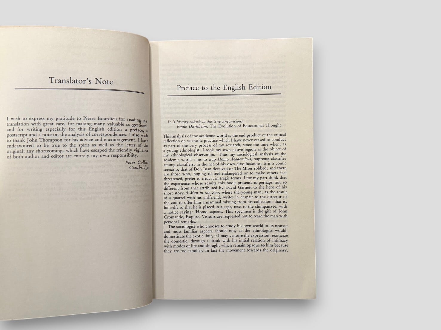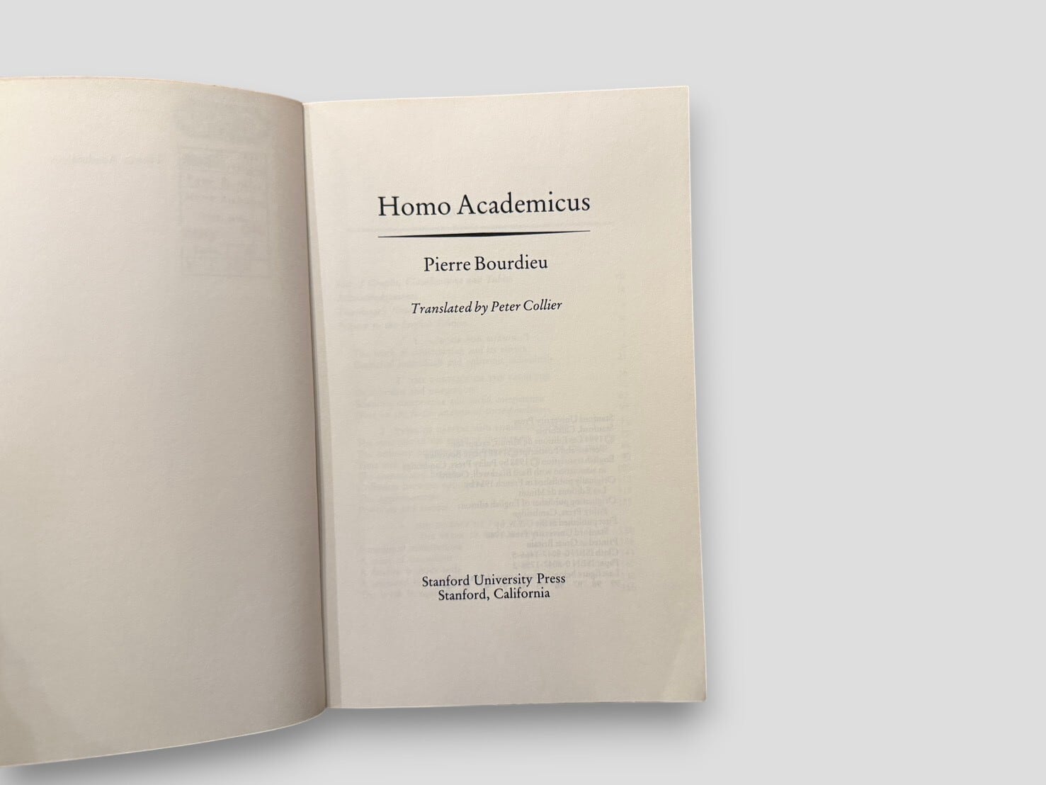 An English translation of Pierre Bourdieu's Homo Academicus, analyzing the structure of the academic field and power relations within it.