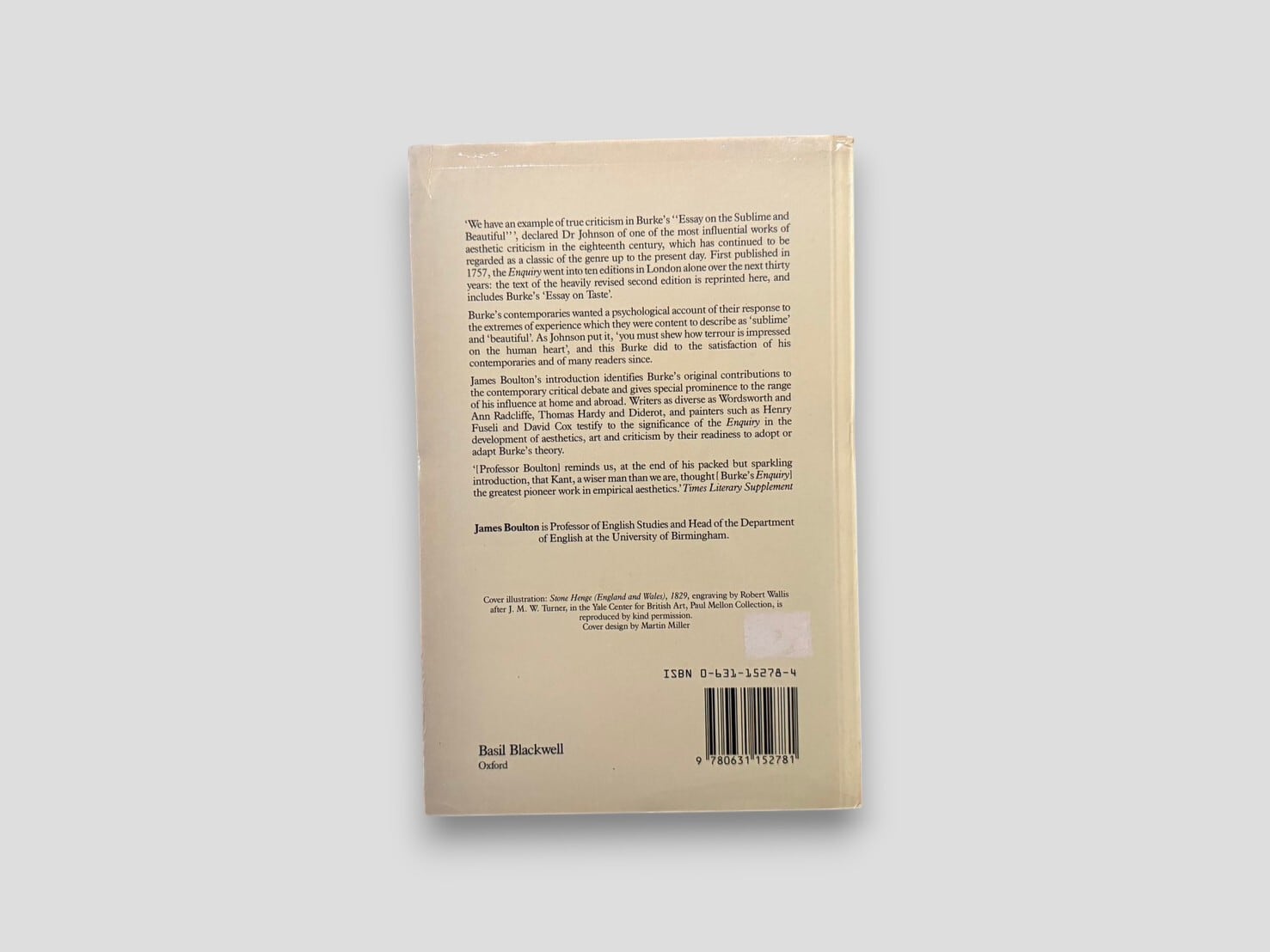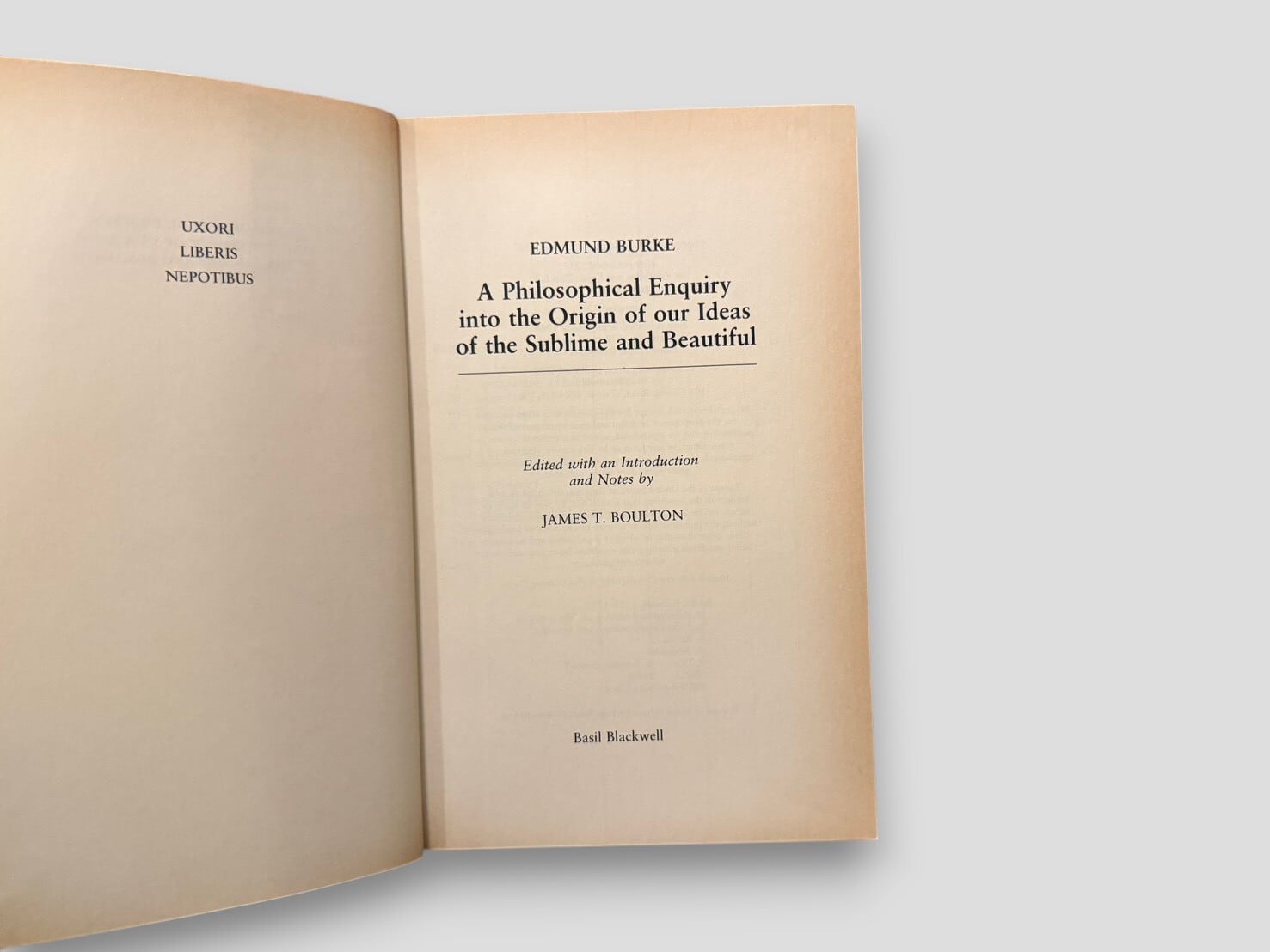 A revised edition of Edmund Burke's A Philosophical Enquiry into the Origin of our Ideas of the Sublime and Beautiful, edited by James T. Boulton as stated on the title page.
