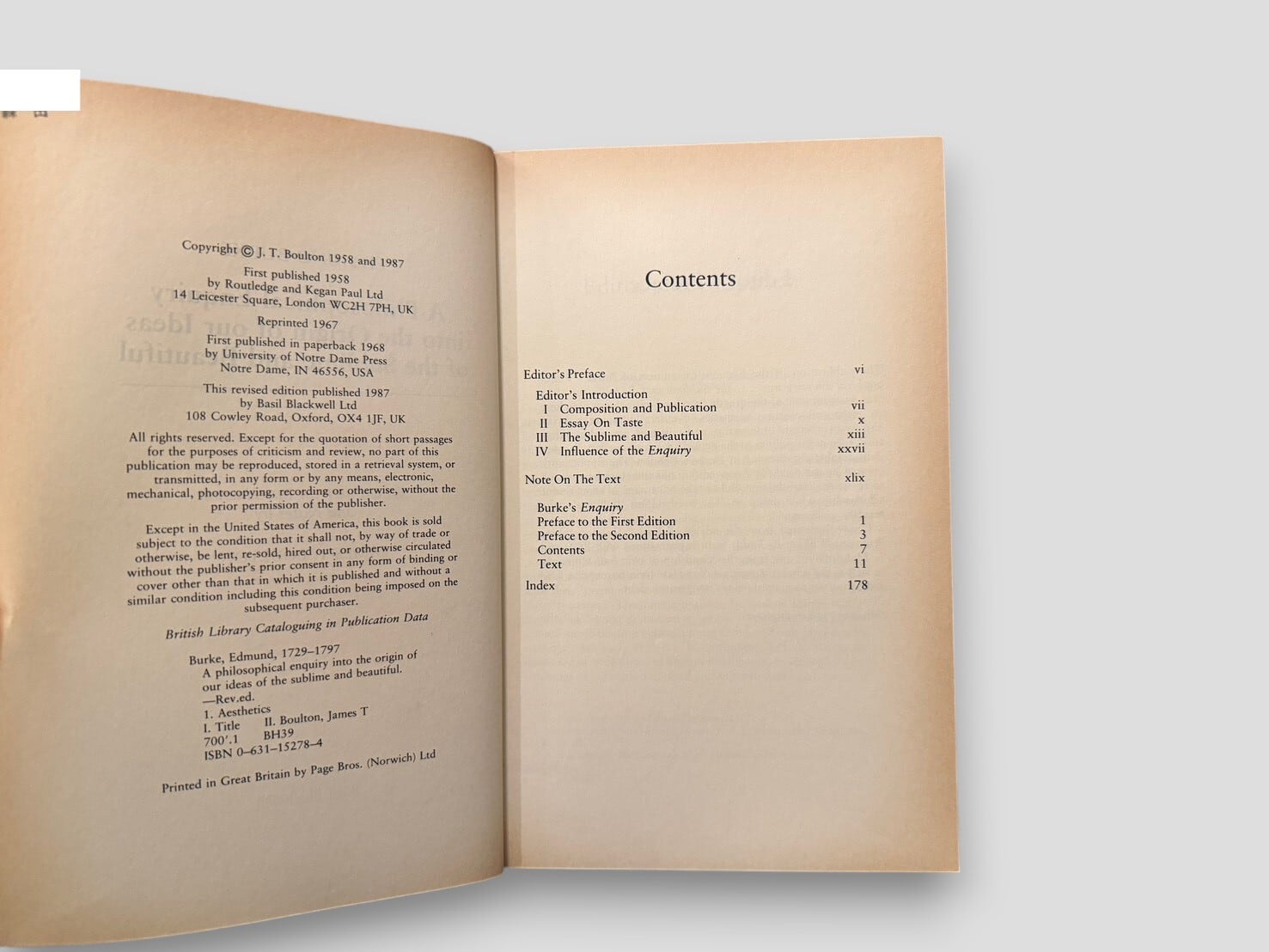 【SFF299】【REVISED EDITION】A Philosophical Enquiry into the Origin of our Ideas of the Sublime and Beautiful(1987) /Edmund Burke