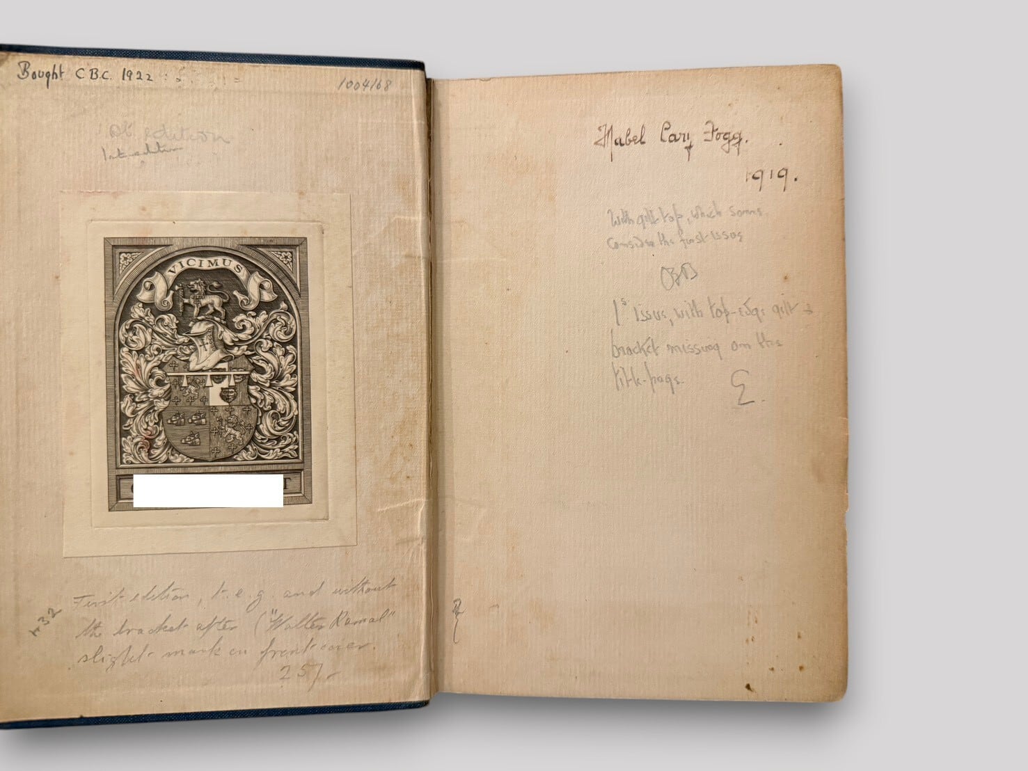 Pages : Good - 全体にヤケ有/フロントエンドペーパー・フロントフライリーフに蔵書票1点・インクと鉛筆による書き込み複数有/リアエンドフライペーパーズにシミ・ヤケ・テープ跡複数有