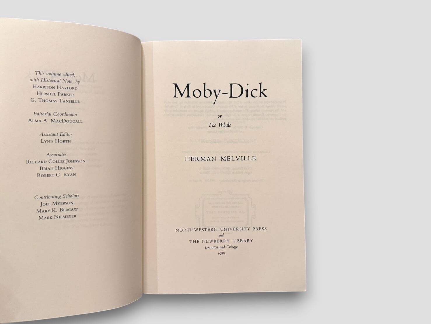 A critical edition of Moby-Dick; or, The Whale by Herman Melville, edited by Harrison Hayford, Hershel Parker, and G. Thomas Tanselle.