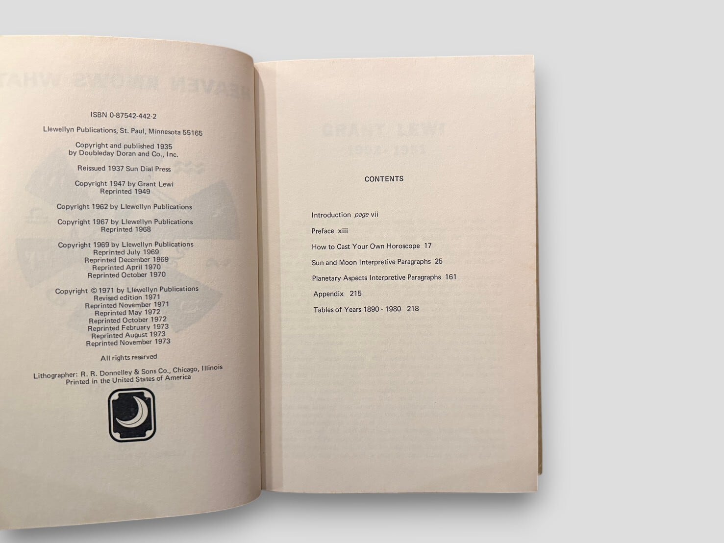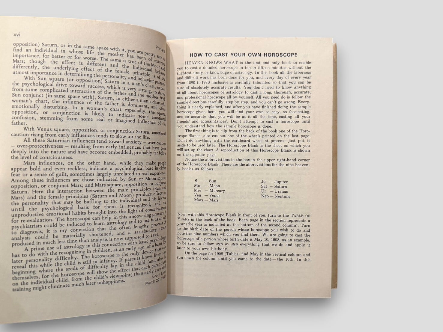 Includes tables and instructions for casting horoscopes, as indicated in the table of contents. Revised edition, 1973.