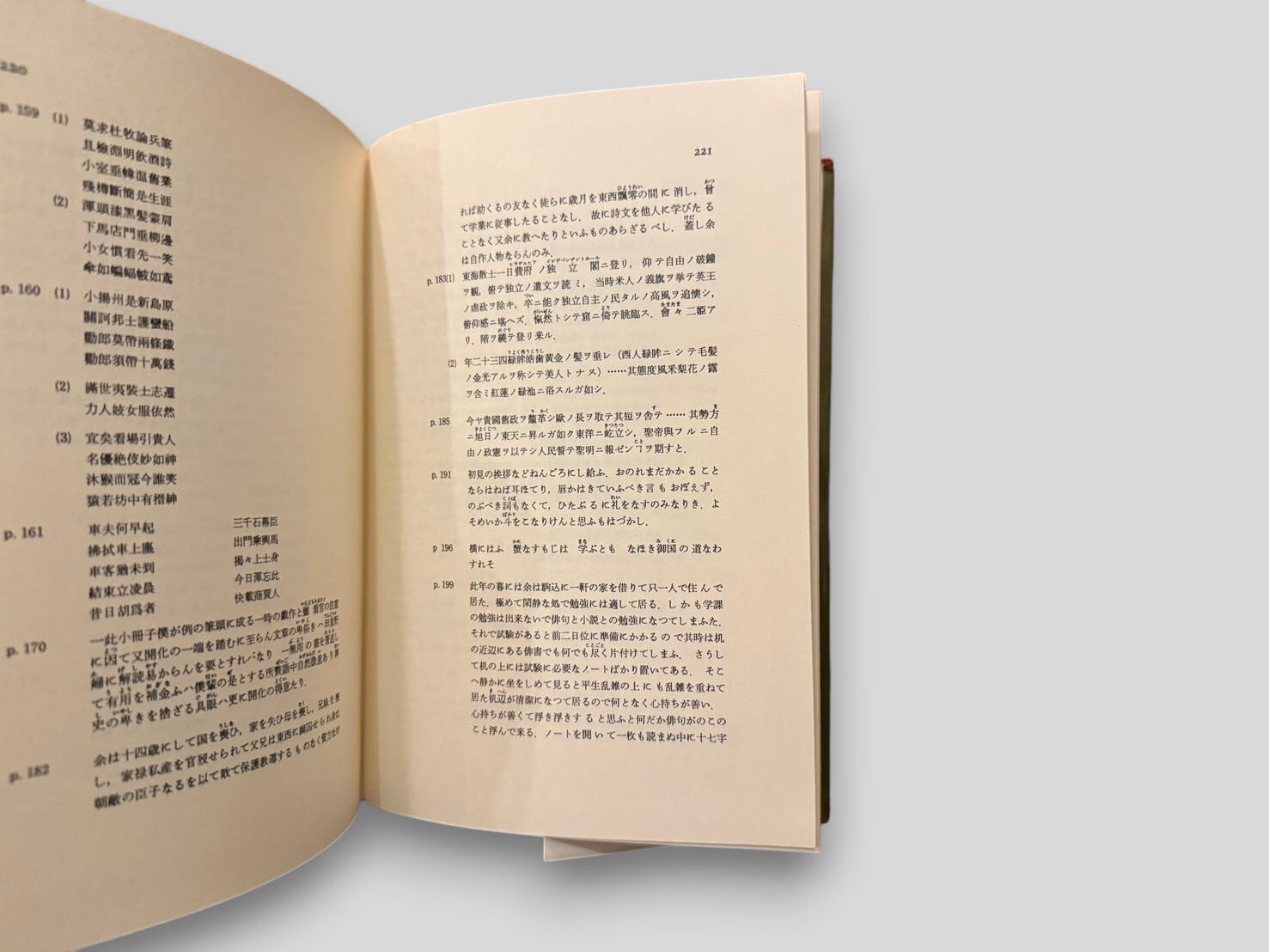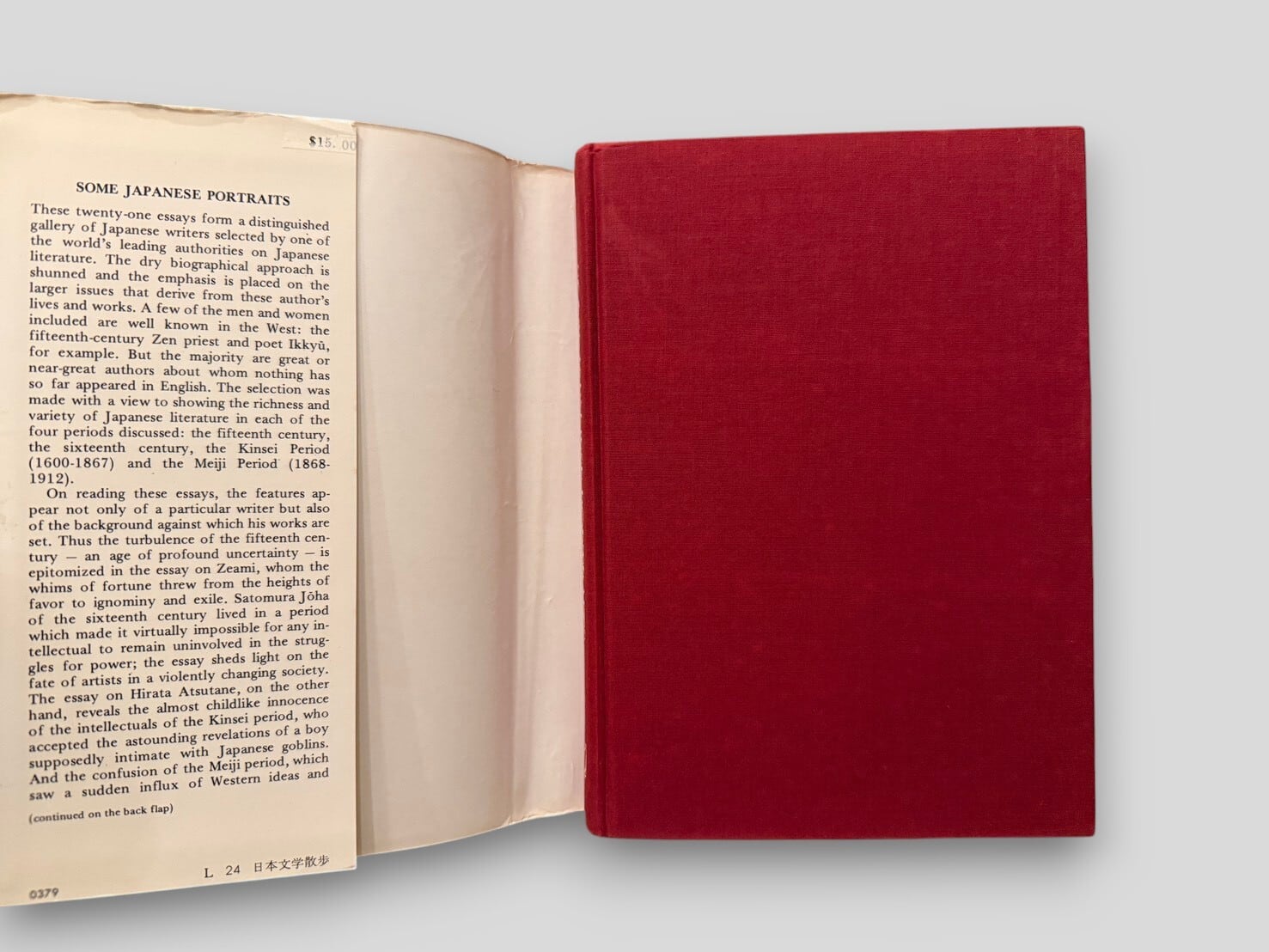 A collection of 21 literary portraits of Japanese writers, based on essays originally written for the weekly magazine Shukan Asahi. The volume is arranged by historical period, covering authors from the fifteenth century to the Meiji era. First edition, 1978.
