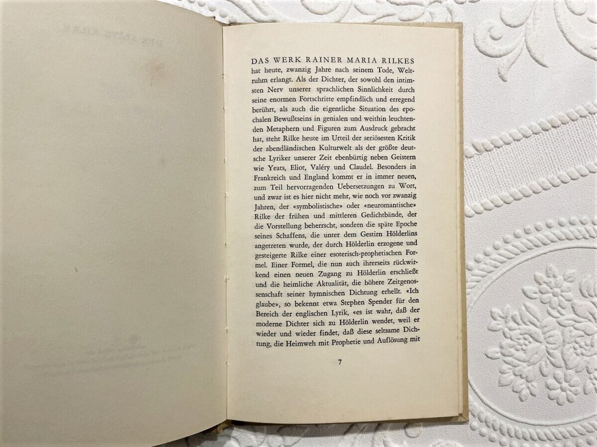 ドイツの詩人、エッセイスト、および文学学者ハンズ・エゴン・ホルスーセン(1913年4月15日- 1997年1月21日)によるドイツ語詩人として知られるライナー・マリア・リルケ(Rainer Maria Rilke、1875年12月4日 - 1926年12月29日)の研究書。