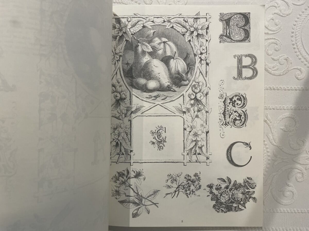花、動物、手紙、貝殻、時代衣装、額縁など550以上のプレートが収録されています。