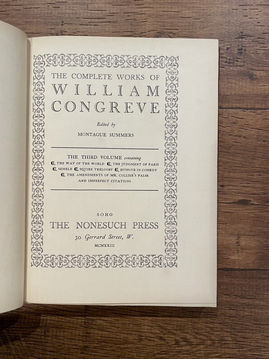 私家版ナンサッチプレス刊行900部限定の英国の劇作家ウィリアム・コングリーブ(1670年1月24日-1729年1月19日)の劇作品集。4冊揃い。