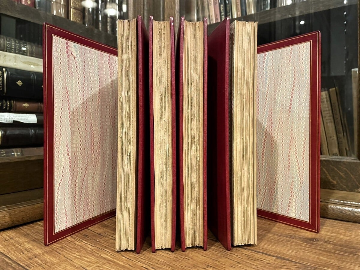 20世紀のロンドン製本会社として最も有名なサンゴルスキ&サトクリフが手掛けた総モロッコ革・天金・背表紙に5本のレイズドバンド、金文字タイトルの特製豪華版は芸術品としても大変価値の高いものになります。