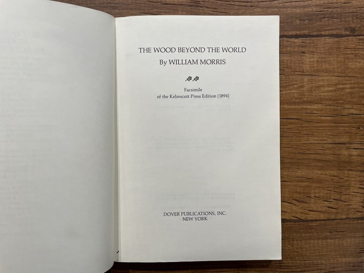 ケルムスコット・プレスで印刷する目的で書かれた作品。それゆえ、モリスの原稿の中に、装飾頭文字や葉飾りを入れる場所が示されている。未知の世界を求めて故郷ラングトンをあとにした若者ウォルター。美しい貴婦人と乙女と小人、謎の三人連れに誘われて、地の裂け目から不気味な森中へと踏み込んでいく。騎士物語の冒険と栄光、妖精譚の魅惑と神秘とを巧みに結びつけた、正にファンタジー文学の佳品です。邦題は『世界のかなたの森』。