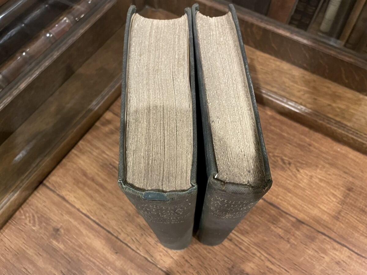 The Natural History and Antiquities of Selborne, in the County of Southampton. Edited by Thomas Bell. In 2 Vols. Large Paper Edition. (John Van Voorst, 1877) Original light blue buckram, gilt lettering on spine, rubbed to spine and corners, spine end corners,spine edds of Volume 1 rapaired by small blue cloth,lower spine end of Volume 2 a bit torn off,spine sunned and faded,else text clean and a very good set.