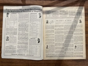 音楽に関する歴史、文学、ゴシップ、政治、音楽教育やピアノ楽譜を掲載し、1957年まで刊行されました。特に戦前(1935年前)に刊行されたものは希少価値が高く、アンティーク調の可愛らしい表紙も相まってコレクターアイテムとしても人気です。
