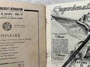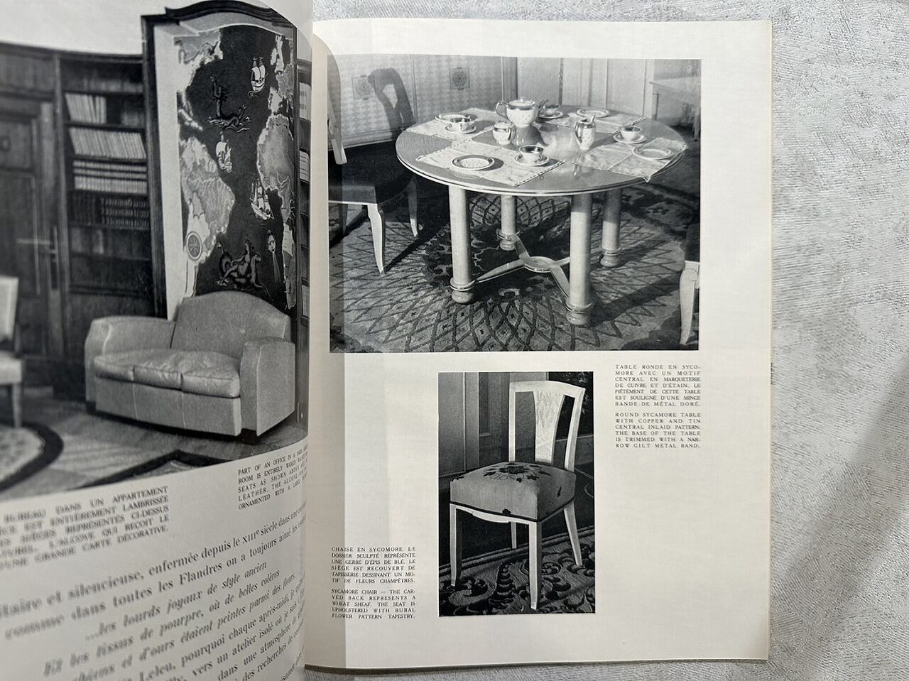 家具と装飾について書かれているパリの月刊誌『Mobilier et décoration』。シャルロット・ペリアン、ジャン・プルーヴェ、 セルジュ・ムイユなどのデザイナーたちが、合理的で無駄のない構造の家具を創作が誕生したフランスの1950・60年代。モダンかつ色とりどりでオプチミズム感のある当時のリアルな住空間を知ることができる貴重な資料。本書は1950年に刊行された第5号。