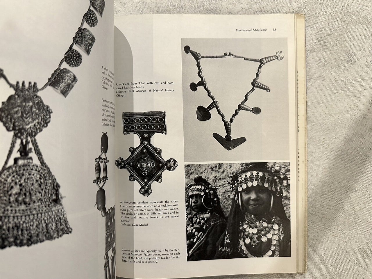 世界中のさまざまな文化で職人によって作られた伝統的なジュエリーの写真集。アフガニスタンのシルバーアクセサリー、タイのメイ族が着用する首輪、モロッコの儀式用イヤリング、南ロシアのビーズペンダントなど、モチーフや技法を添え、図版付きで紹介されている。