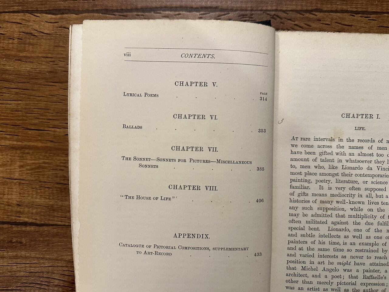 Original cloth binding. Published by Macmillan and Co., London, 1882. First edition. Frontispiece. One facsimile of "Ardour and Memory." Appendix titled, "Supplementary List to Chapter III. (The Artistic Record)."
