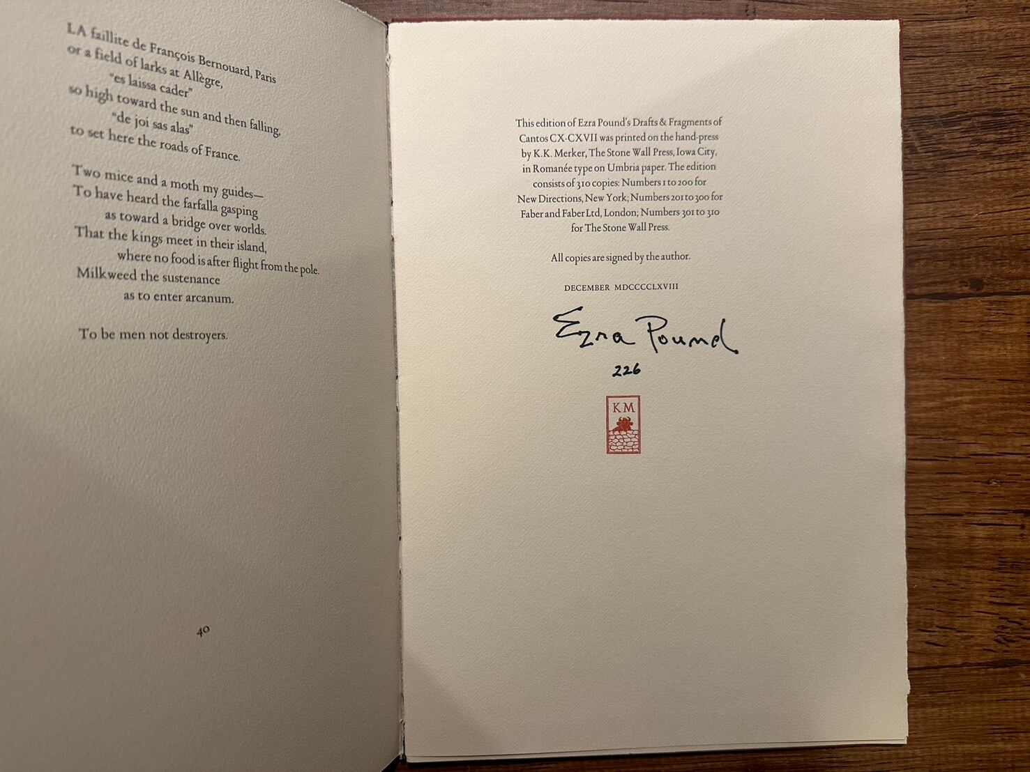 【RL057】【FIRST EDITION】【SIGNED】Drafts & fragments of Cantos CX-CXVII