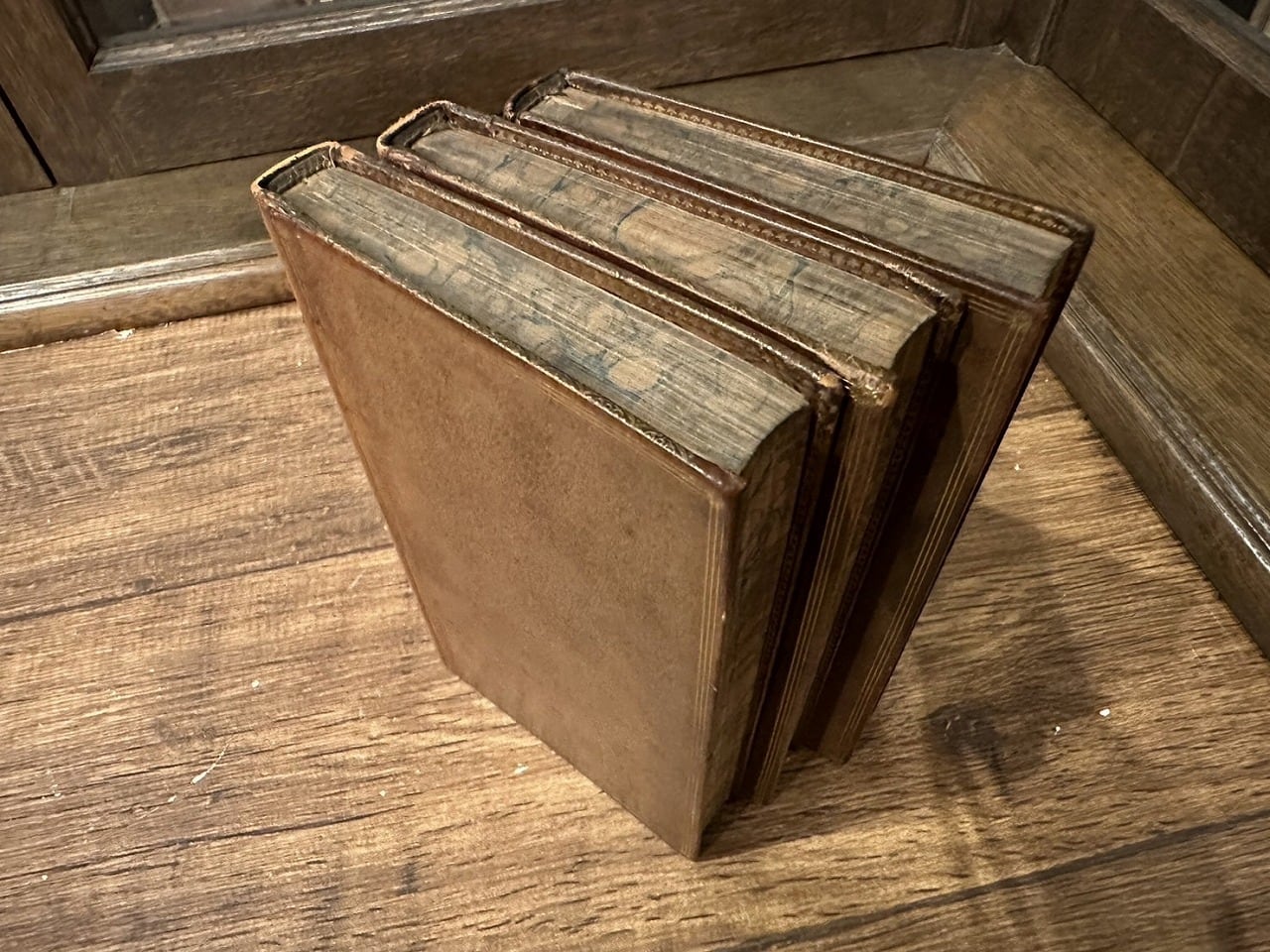 スコットランドの詩人、初代准男爵サー・ウォルター・スコット(Sir Walter Scott:1771-1832)の小説。エジンバラの南東約550㎞に位置するメルローズの修道院を舞台として書かれている。実際にスコットは1811年にメルローズ近郊に移住している。(後の1824年にはゴシック調の大規模な邸宅「アボッツフォード邸」を完成させている。)邦訳は『修道院長』。スコット文学の香り高い名作の総革装丁の美しいセット。1820年刊行、初版。揃3冊。
