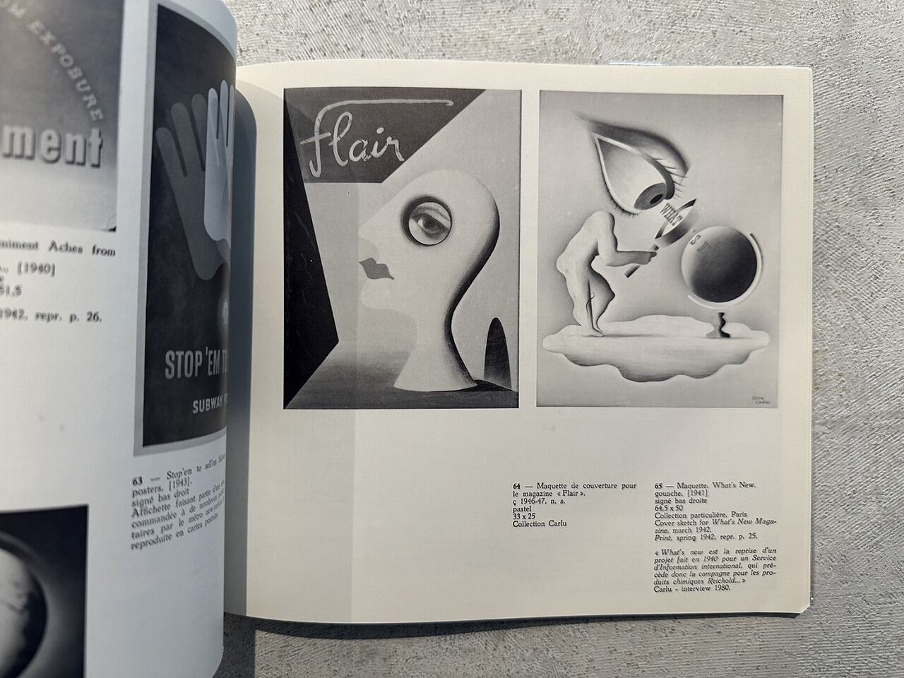 1980年から1981年までパリの美術館で開催された、アール・デコを代表するフランスのグラフィックデザイナー、ジャン・カルリュ(Jean Carlu;1900-1997)のポスター回顧展の際に刊行されたカタログ。ジャン・カルリュは、コラン、ルーポ、カッサンドルとともに「三銃士」と呼ばれ、フランス広告界の支配者的存在だった。彼の得意としたキュビスム、未来派、構成主義の要素を取り入れた幾何学的なポスターデザインを多数収録している。