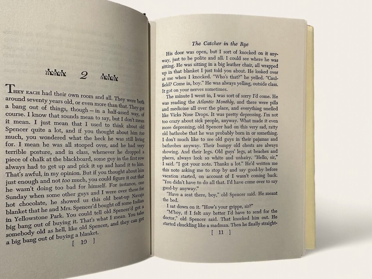 アメリカ合衆国の小説家、ジェローム・デイヴィッド・サリンジャー(Jerome David Salinger;1919-2010)の代表作。高校を放校となった17歳の少年ホールデン・コールフィールドがクリスマス前のニューヨークの街をめぐる長編小説。邦訳は『ライ麦畑でつかまえて』。1951年7月16日にリトル・ブラウン社から出版された初版の復刻版。