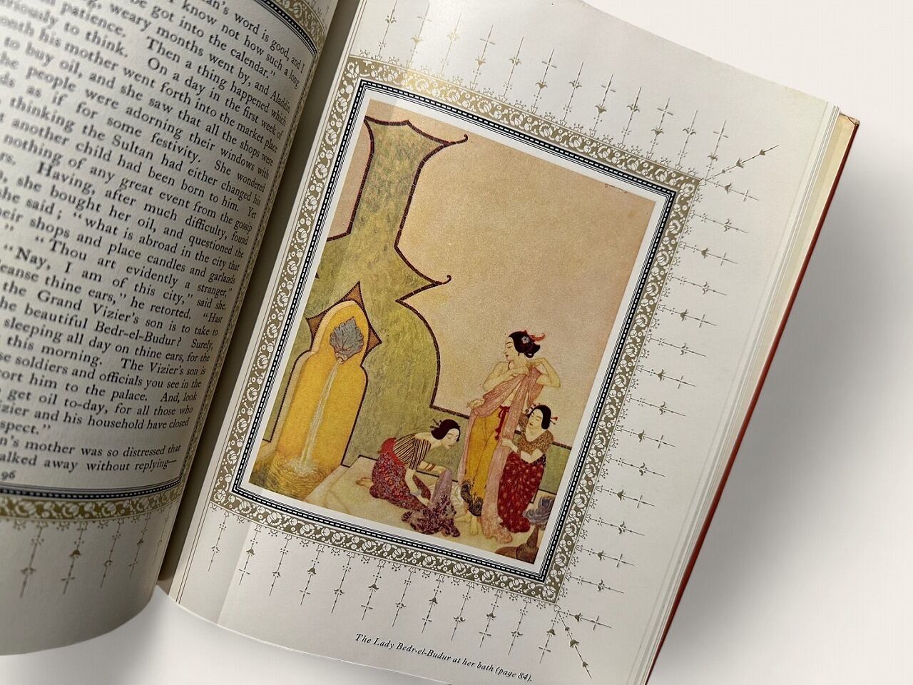イスラム世界の説話集、『千夜一夜物語』の中の物語『船乗りシンドバードの物語』『アラジンと魔法のランプ』他収録。イギリスの挿絵画家、エドマンド・デュラック(Edmund Dulac:1882-1953)による東洋的要素を取り入れた挿絵が美しい1冊。