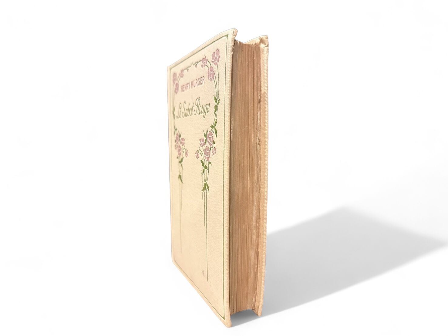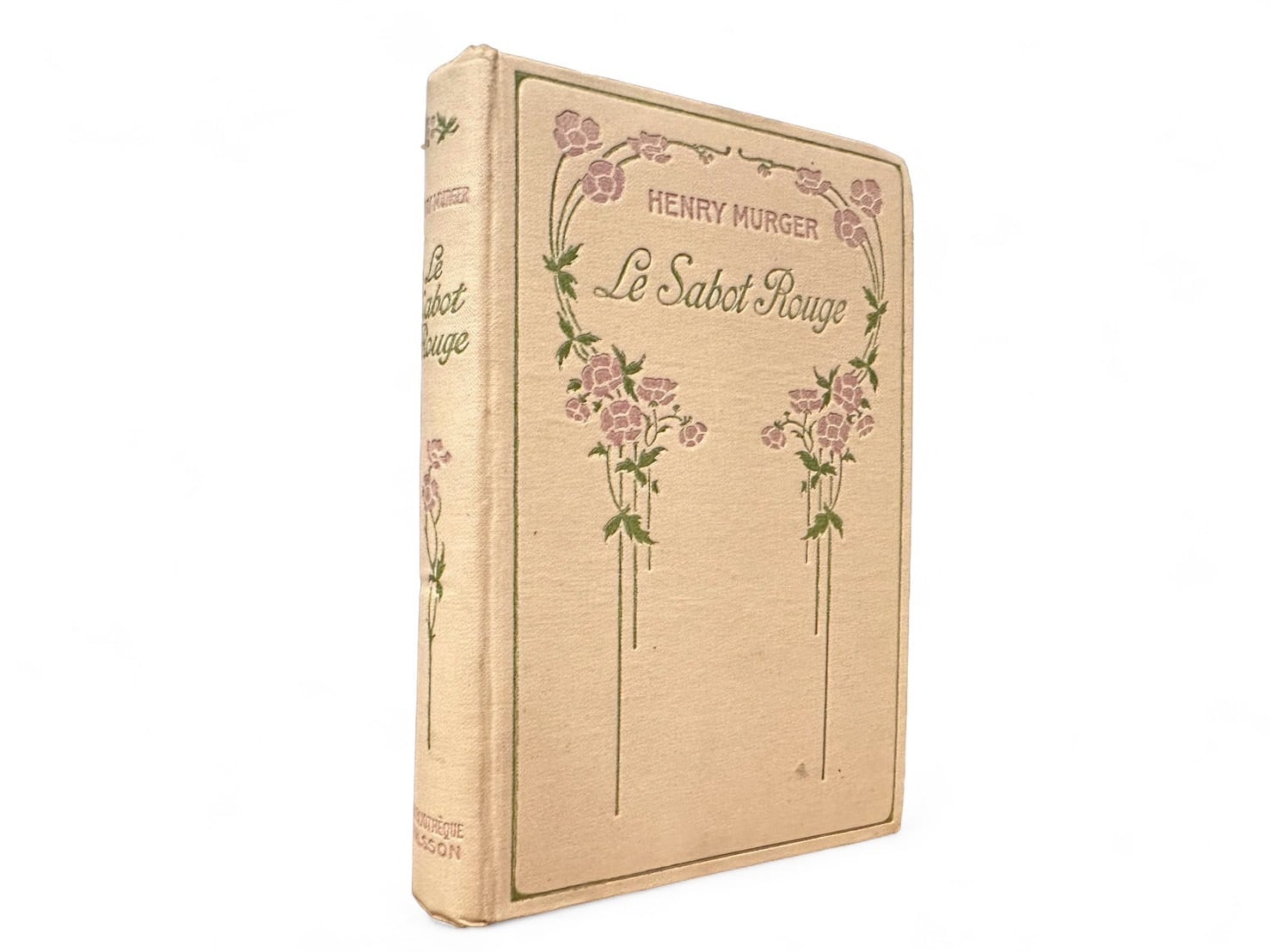 フランスの詩人、アンリ・ミュルジェール(Henri Murger;1822-1861)の作品。ピンクベースのクロス地に、パープルのお花とガーランドの表紙デザインが目を引くパリの出版社『EDITIONS NILSSON』から出版された愛らしい一冊。