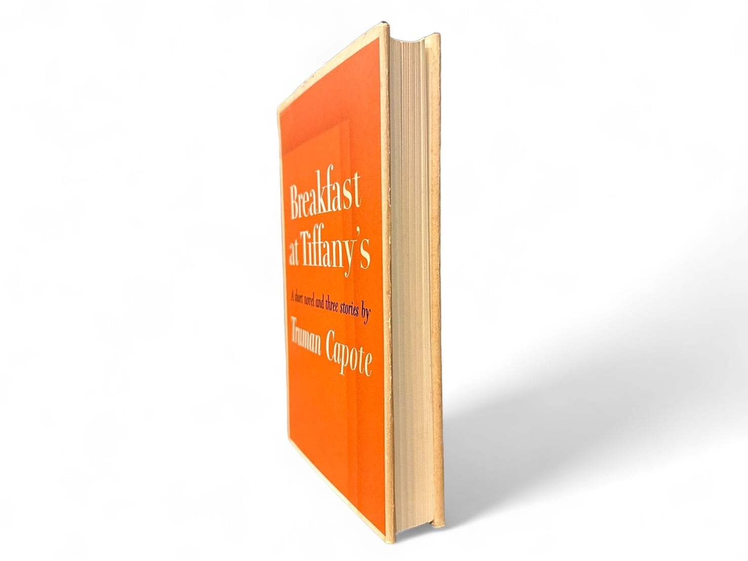 アメリカの小説家、トルーマン・カポーティによる中編小説『ティファニーで朝食を』。カポーティの代表作の一つ。1958年に『エスクァイア』で発表後、ランダムハウスから出版された。ニューヨークを舞台に、自由奔放に生きる女性主人公を描く。1961年にオードリー・ヘプバーン主演でパラマウント映画によって映画化された。1958年初版後刷。
