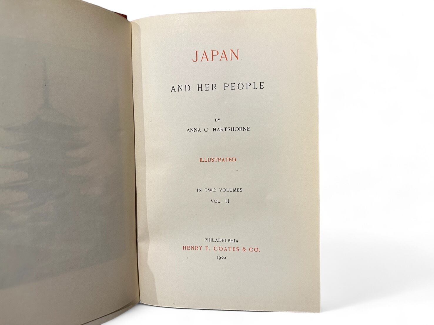 アメリカ人教育者、アナ・ハーツホンによる著書。日本と日本人の歴史を写真と共に紹介している。序文には親友であった津田梅子と新渡戸稲造への謝意が述べられており、3人の信頼関係の強さがうかがえる。1902年刊行初版。2冊セット揃、美本。