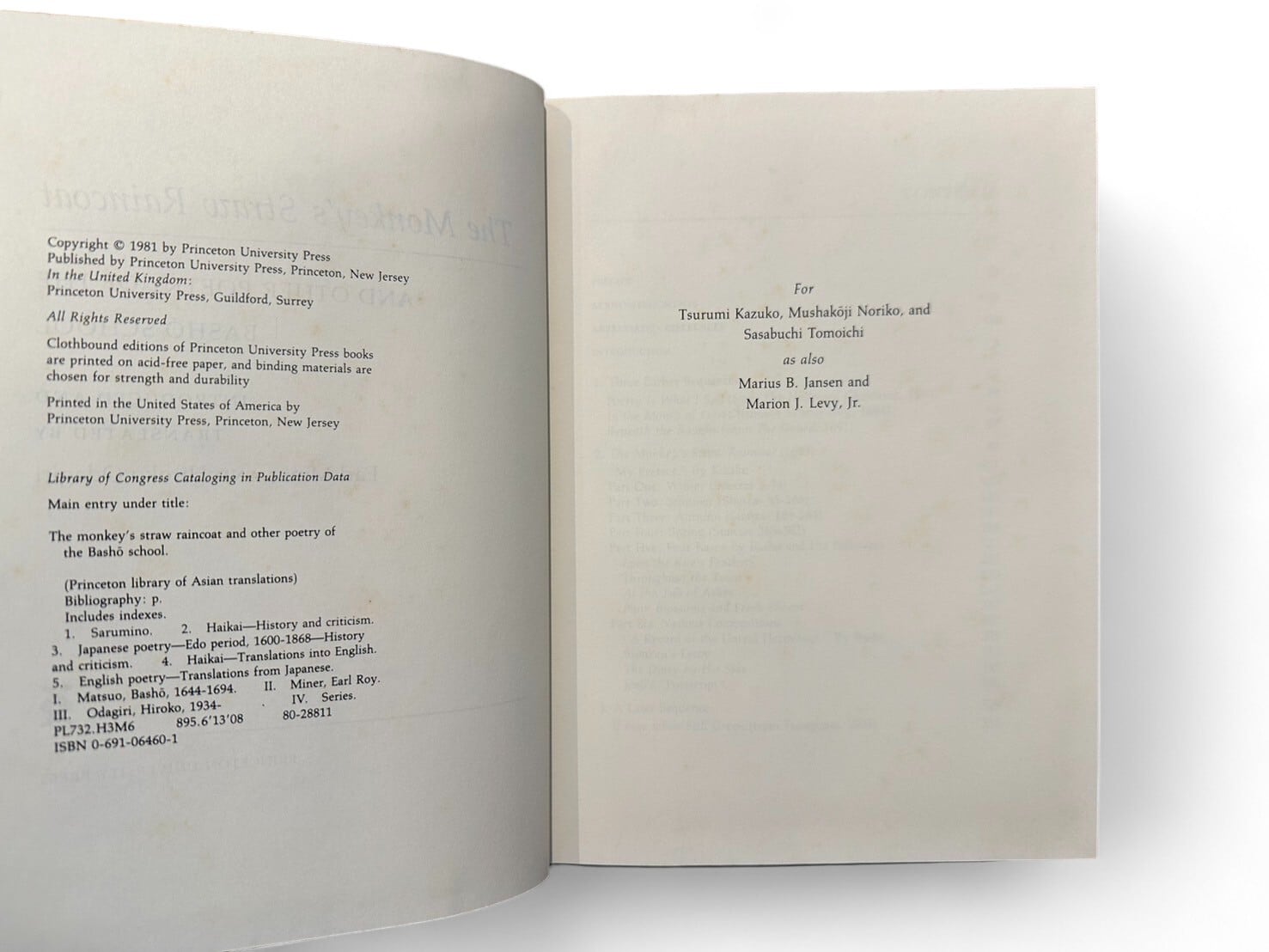【SJ191】【FIRST EDITION】The Monkey's Straw Raincoat and Other Poetry of the Basho School / Earl Miner & Hiroko Odagiri