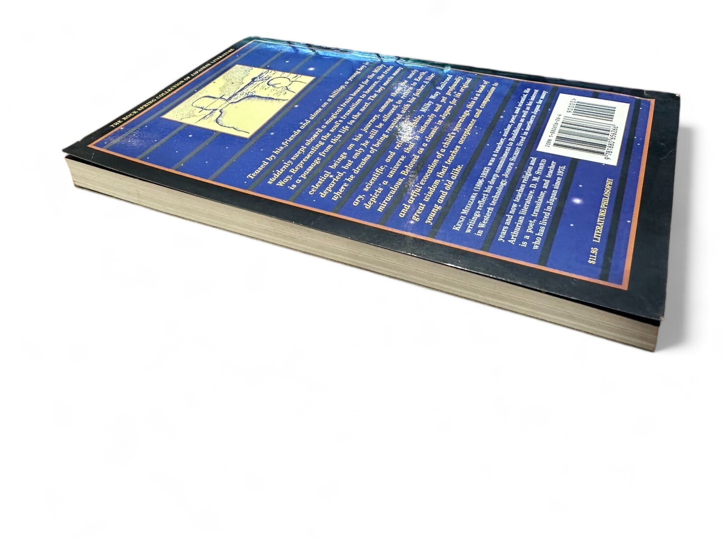 日本の詩人、宮沢 賢治(1896-1933)による童話作品『銀河鉄道の夜』英訳本。孤独な少年ジョバンニが、友人カムパネルラと銀河鉄道の旅をする物語で、宮沢賢治童話の代表作のひとつとされている。
