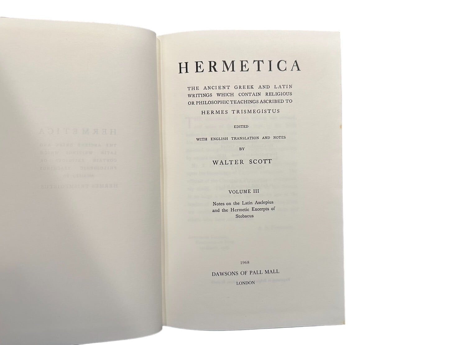 【SG030】【REPRINT】Hermetica : the ancient Greek and Latin writings which contain religious or philosophic teachings ascribed to Hermes Trismegistus(1968) / Walter Scott