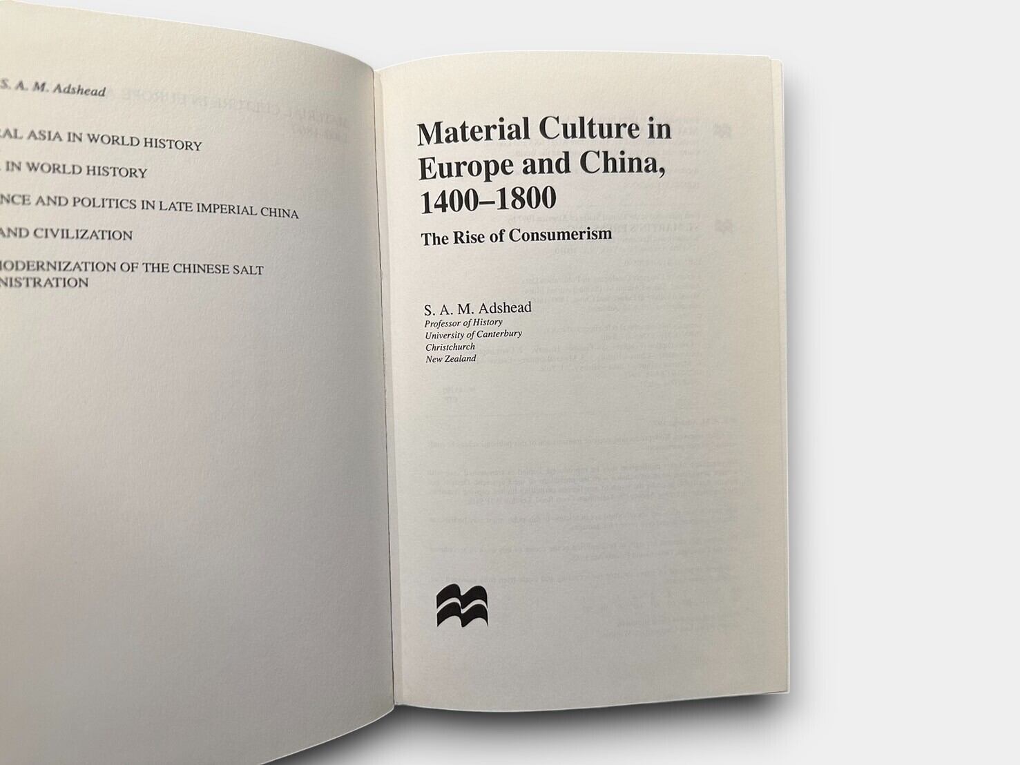 【SAA072】【FIRST EDITION】Material Culture in Europe and China, 1400-1800 The Rise of Consumerism(1997) /S.A.M. Adshead