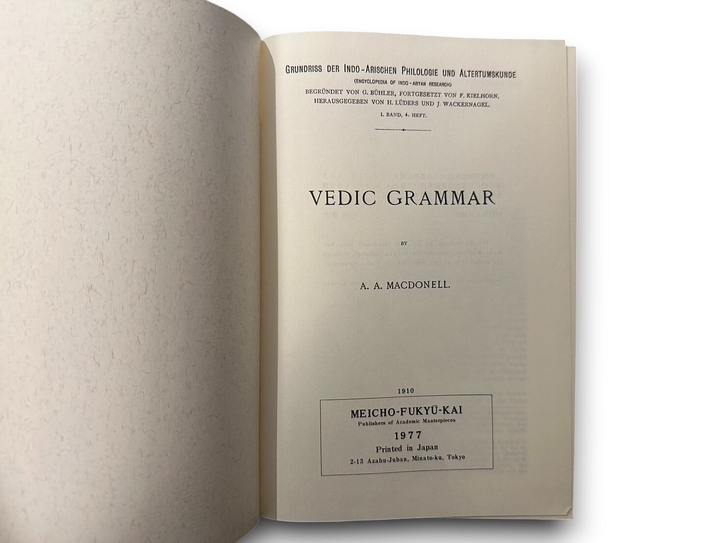 バラモン教とヒンドゥー教の聖典『ヴェーダ』において用いられたヴェーダ語文法書。著者はヴェーダとサンスクリットに通じ『サンスクリット文学史』などの著書があるイギリスの東洋学者アーサー・アンソニー・マクドネル(1854-1930)。国内で刊行されたリプリント。