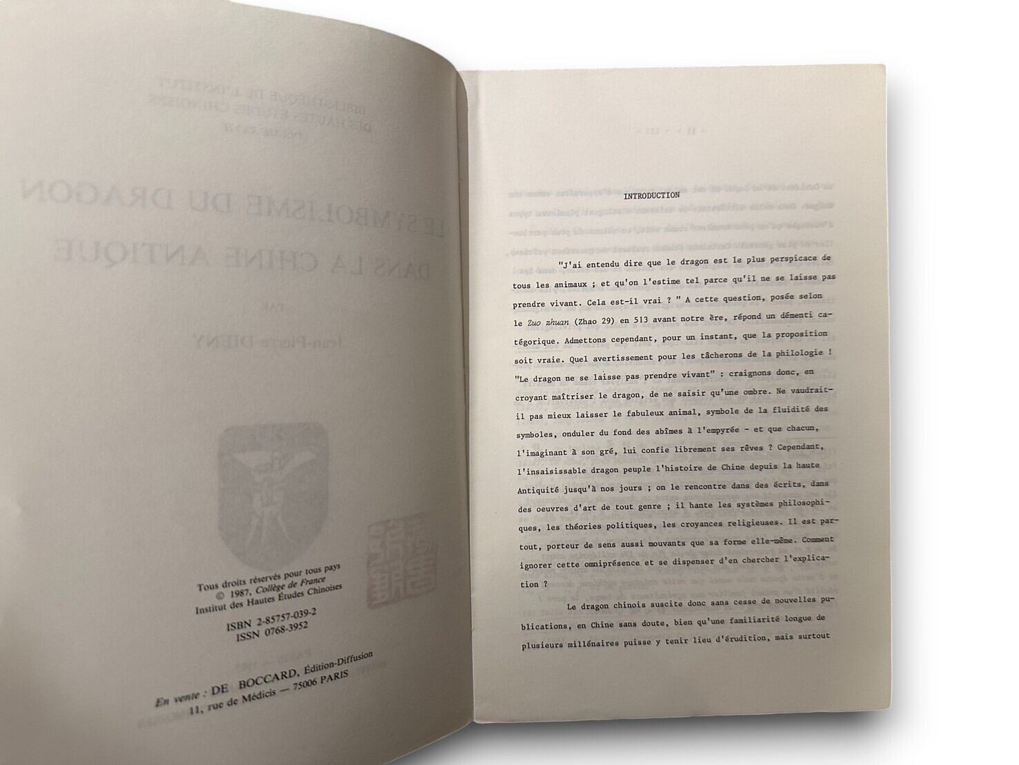 【SAA102】【FIRST EDITION】Le Symbolisme du dragon dans la Chine antique (1987) / Jean-Pierre Diény