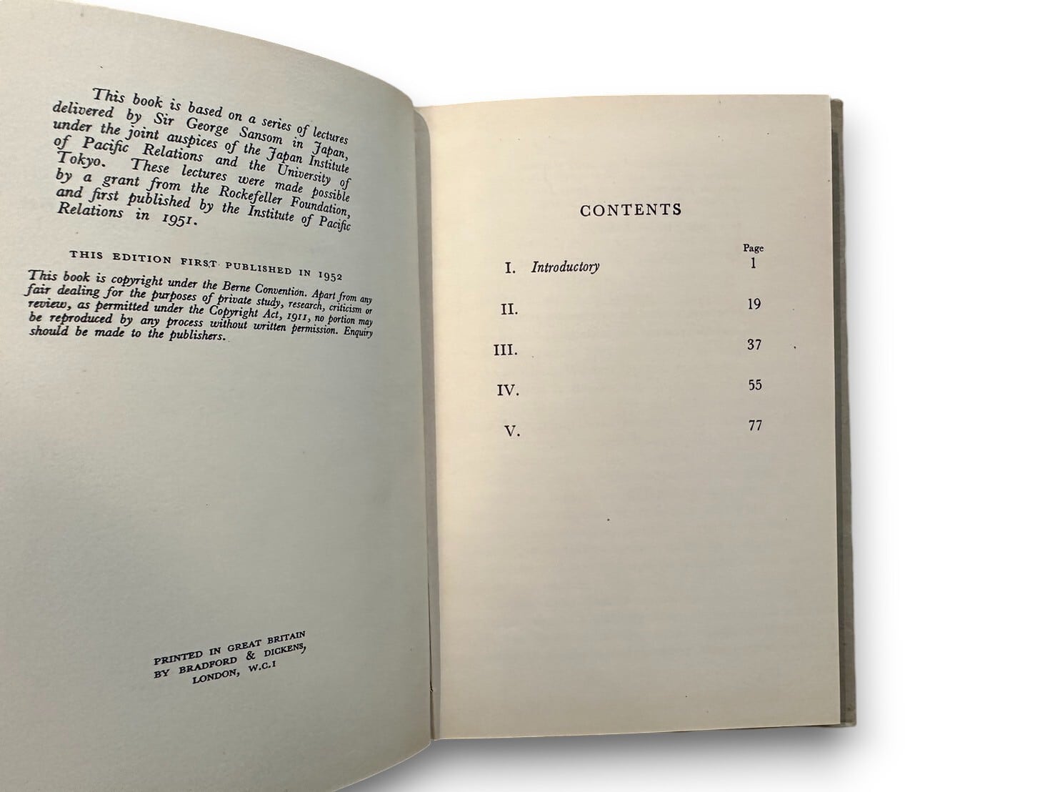 イギリスの外交官で、前近代の日本に関する歴史学者、サー・ジョージ・ベイリー・サンソム(1883-1965)著書。邦訳『世界史における日本』などで再販を重ねている良書。