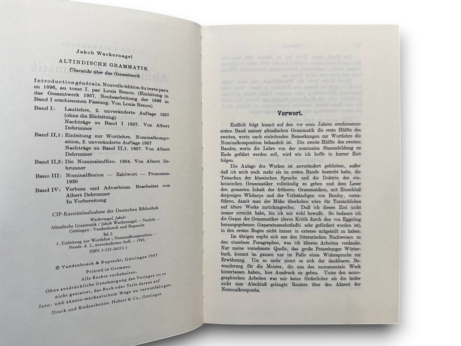 スイスの言語学者、ヤーコプ・ヴァッカーナーゲル(1853-1938)による記念碑的な大著『古代インド語文法』。第2巻。