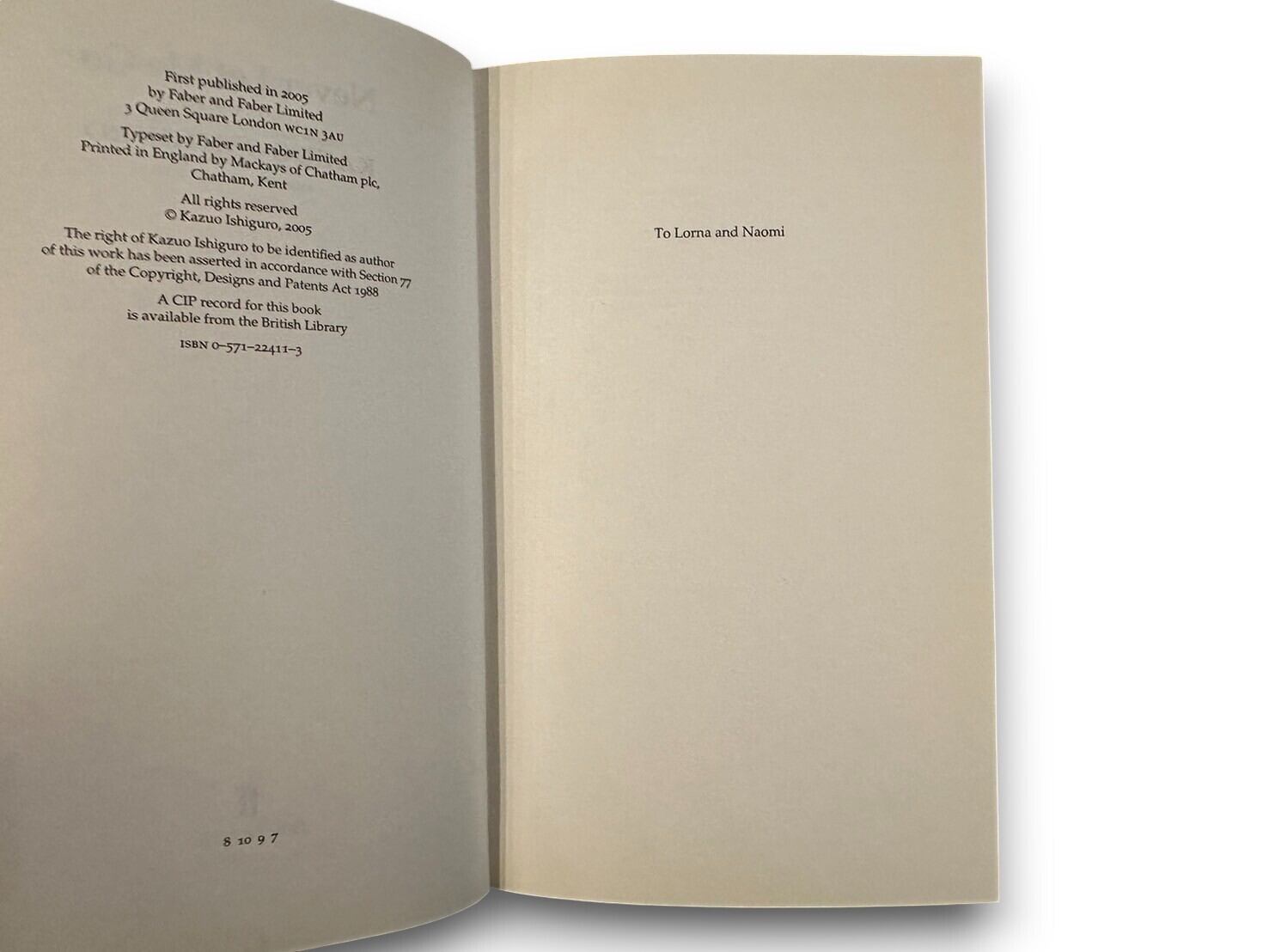 2005年発表のカズオ・イシグロによる長編小説で、同年のブッカー賞最終候補作。邦訳『わたしを離さないで』。1990年代末のイギリスで提供者達の世話をする31歳の介護人であるキャシーが提供者達の世話をしつつ自分の育った施設で暮らした奇妙な少女時代や卒業後を回想し、自分達の秘密を紐解いていくストーリー。2017年のイシグロのノーベル文学賞受賞にともなって本作の注目度も高まり、日本でも注文が殺到して増版された一冊である。貴重な初版。