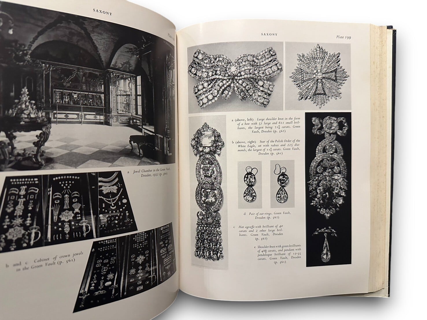 ヨーロッパの王冠や王冠の宝石の百科事典。王冠の他、皇帝や王室の儀式で使用される装飾品の歴史も包括的にまとめている。美しい装飾品の数々の図版が多数収録されている。非常に貴重な初版。