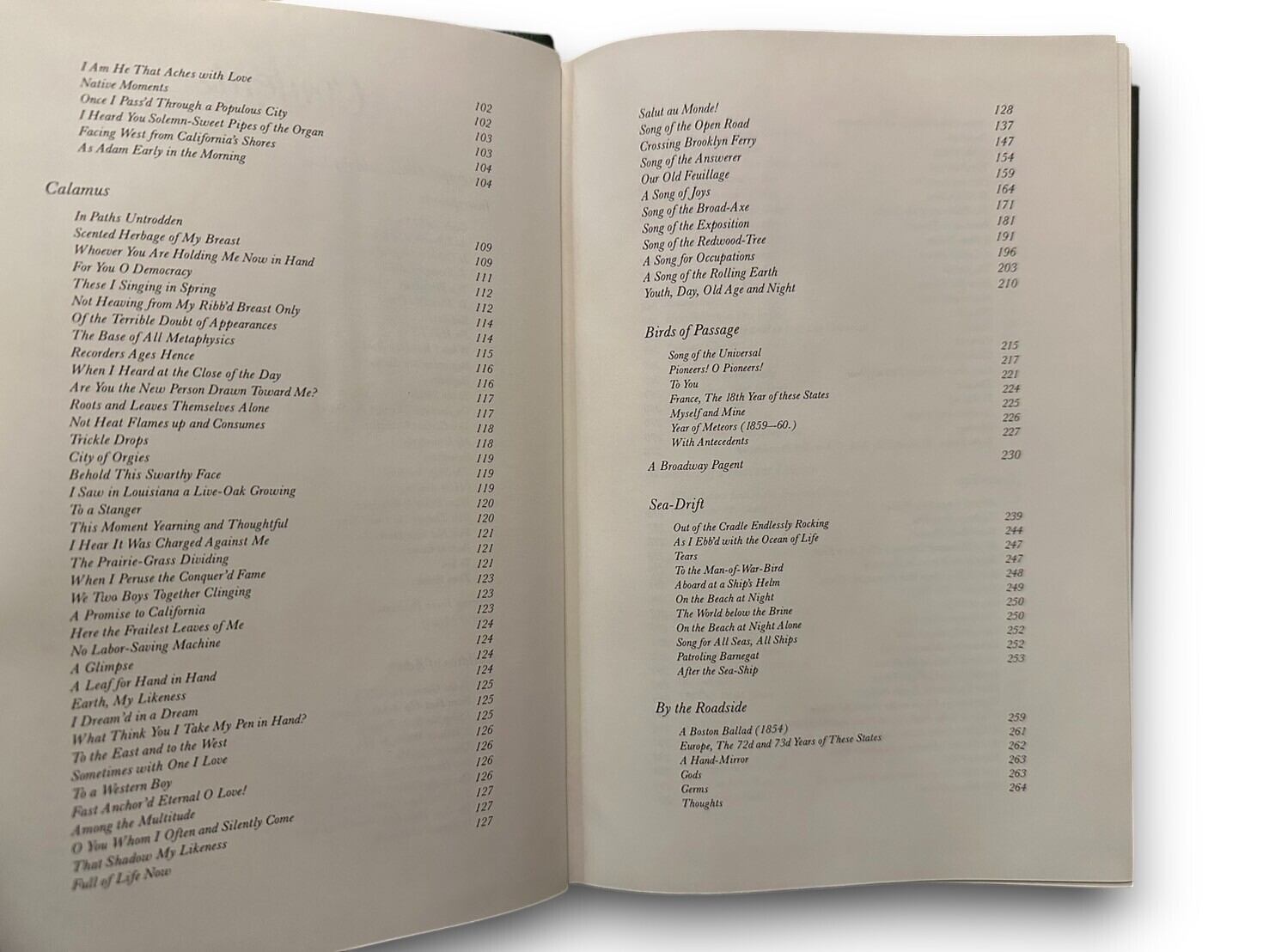 アメリカ文学において最も影響力の大きい作家の一人であるウォルト・ホイットマン(1819-1892)の代表作『草の葉』。脚韻 (rhyme) も律格 (meter) もなく、行連 (stanza) はばらばらで、当時のヨーロッパにはない新形式の自由詩の詩集で、アメリカの叙事詩を市井の人々に届けようという試みで1855年に自費出版した。以後、ホイットマンは生涯にわたり本作を改訂増補を続けた。初版の巻頭詩「ぼく自身の歌」が最も広く知られている。