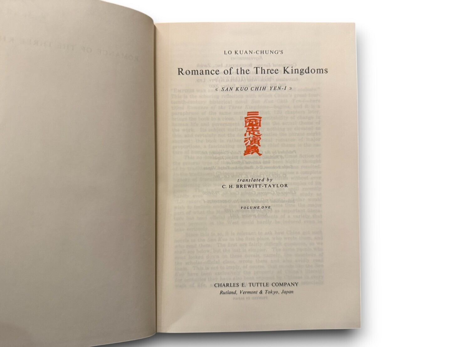 中国の明代に書かれた長編白話小説、『三国志演義』英訳本。『三国志演義』は後漢末と蜀・魏・呉による三国時代を舞台とする時代小説・通俗歴史小説で、四大奇書の一つに数えられる。2冊セット。タトル版初版第9刷り。