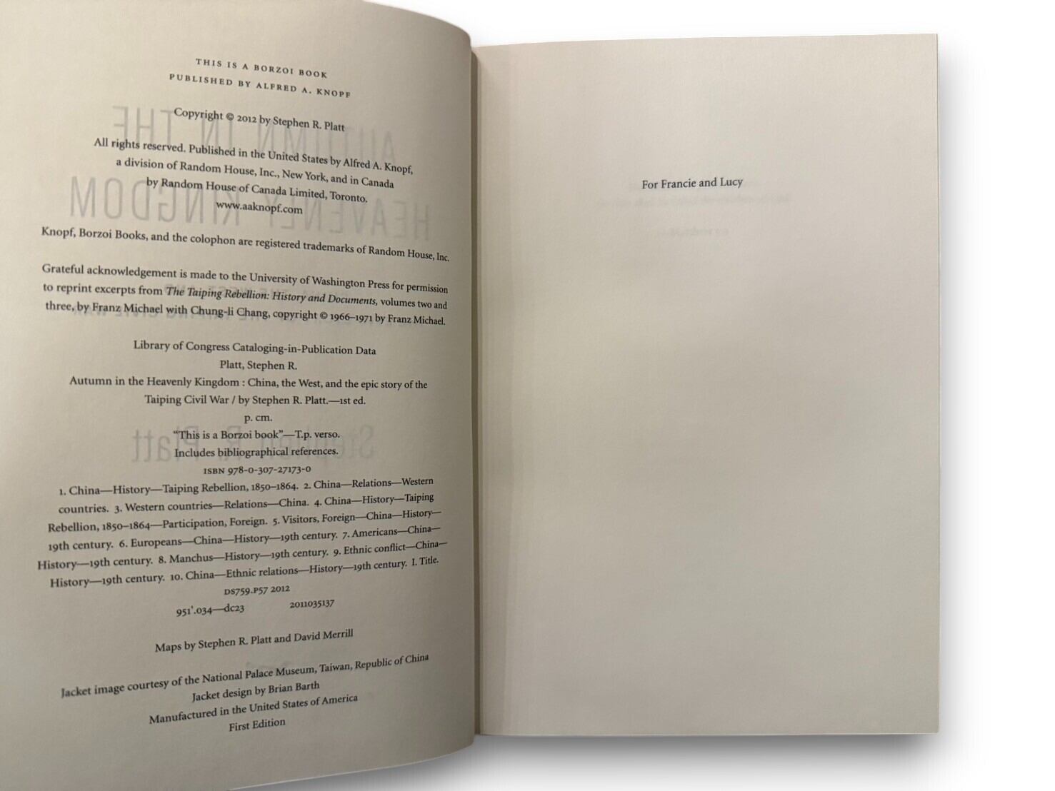 【SAA129】【FIRST EDITION】Autumn in the Heavenly Kingdom: China, the West, and the Epic Story of the Taiping Civil War (2012) /Stephen R. Platt