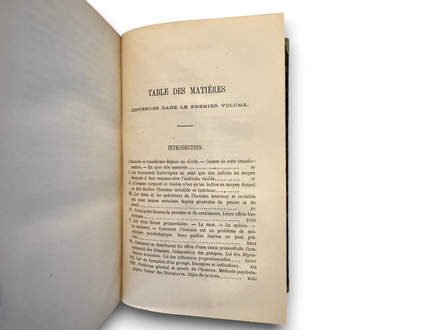 フランスの哲学者、イポリート・テーヌ(1828-1893)の代表作『Histoire de la littérature anglaise』。1863年初版刊行。本書は1866年に刊行された増補改訂第 2版。全4巻本揃。邦訳に『英国文学史』など。テーヌの思想は感覚論に由来し、人間や作品の発展を自然科学の見地から考察し、その法則を見いだそうとした。その正確な観察に対する情熱は、薬学と解剖学を学ぶことによって養われ、批評の対象を分析して人種・環境(風土と社会構造)・時代の3要素に還元するその方法は、決定論・唯物論に傾いていた。