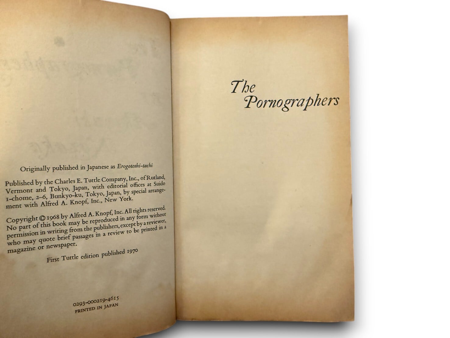【SJ396】【FIRST TUTTLE EDITION】The Pornographers(1970) /Akiyuki Nozaka