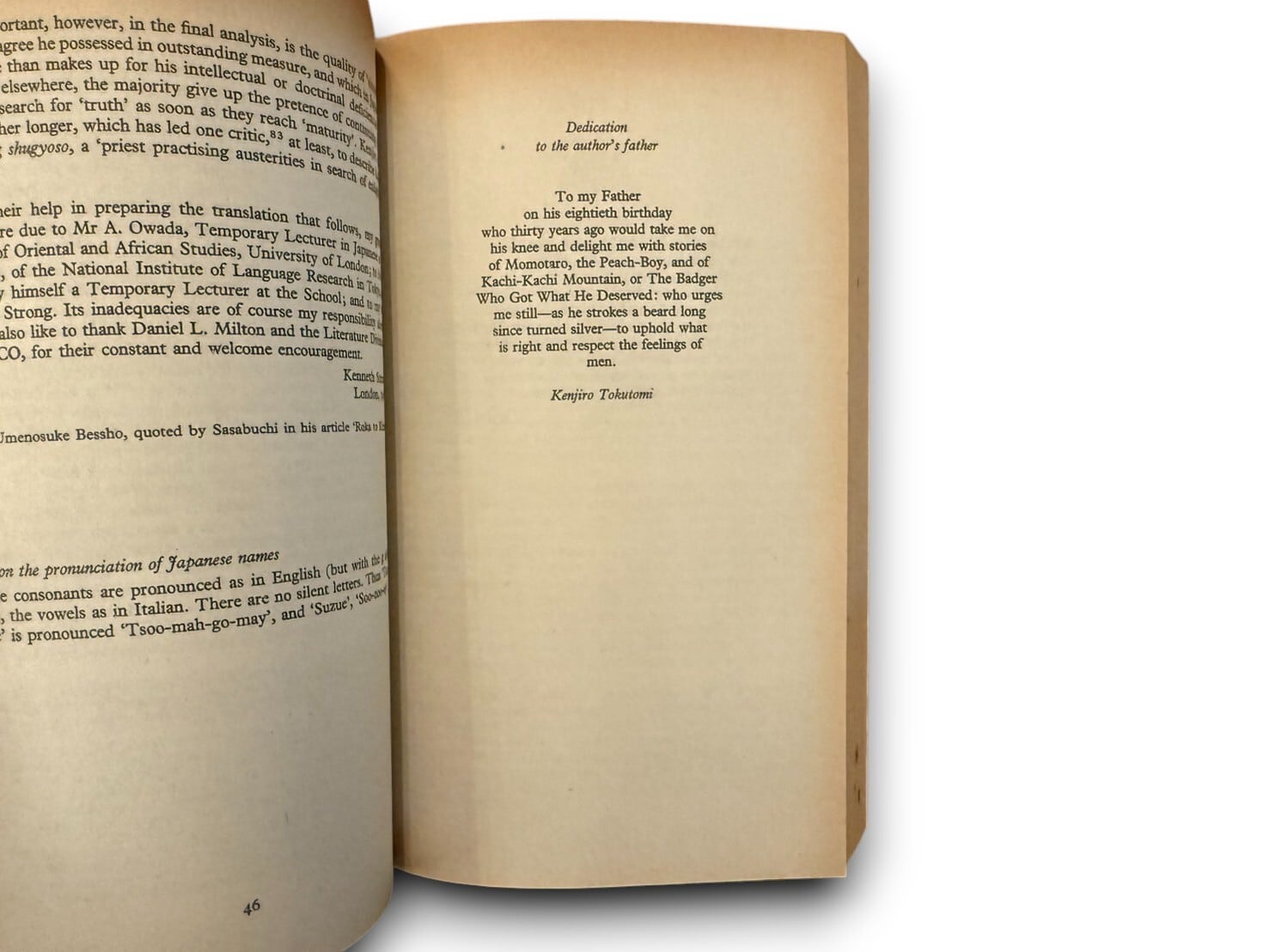 日本の小説家、徳冨 蘆花(本名は徳富健次郎:1868-1927)による自伝的小説『思出の記』英訳本。作者自身の生活体験に基づいた教養小説であり、同時に明治の時代精神を描いている。タトル社版初版。