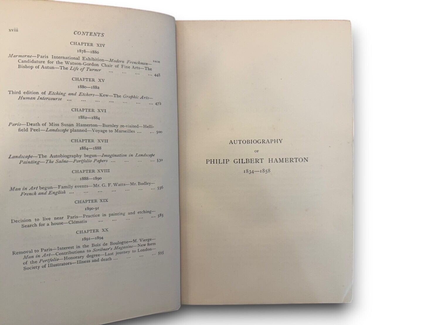『知的生活』『幸福論』などの著作で知られている英国の文筆家、フィリップ・ギルバート・ハマトン(1834-1894)の自伝書とフィリップの妻であるウジェニーによる回想録。回想録では、結婚後の二人の生活を掘り下げ、二人の経験、経済的困難、芸術的努力、旅行、友情、そしてフィリップが1894年に亡くなるまでの間に起こった重要な出来事を記録している。1897年に刊行された貴重な初版。