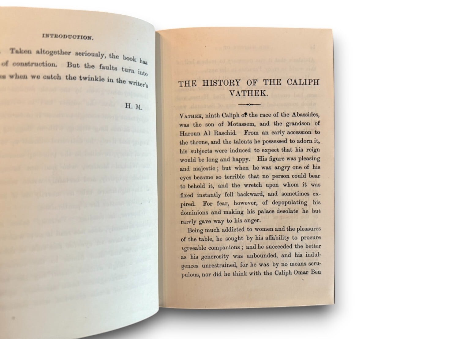 ウィリアム・トマス・ベックフォードの代表作であるゴシック小説『ヴァセック』英訳本。『ヴァセック』は幻想的なアラビア物語で、ゴシック文学史上の金字塔として歴史に名を刻んでいるが、神を畏れぬ冒涜的な内容は当時大きなスキャンダルとなった。ムスリムのカリフを主人公としたこの異教的な物語には、彼の東洋趣味が遺憾なく発揮されている。また、バイロン卿、トーマス・ムーア、ジョン・キーツなどの作品に影響を与えている作品でもある。1782初版刊行(仏語)、本書は1887年刊行。